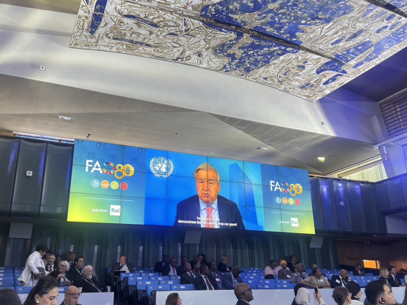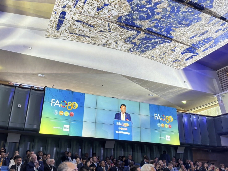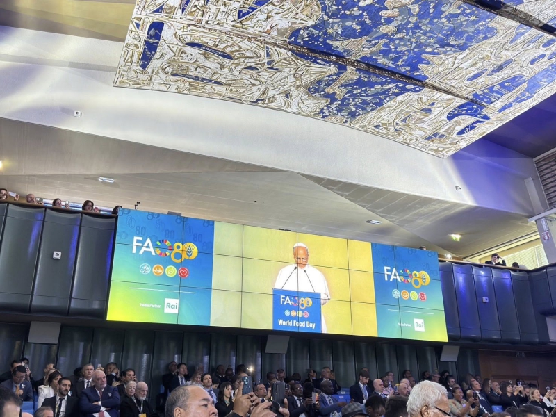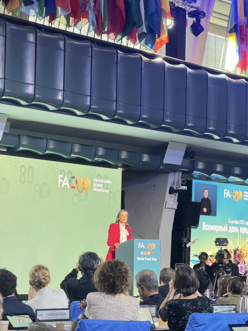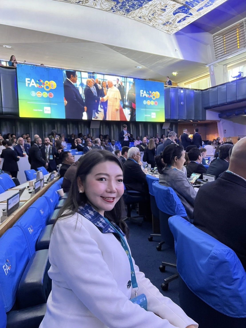 วันที่ 16 ตุลาคม 2568 ผู้อำนวยการสำนักการเกษตรต่างประเทศ (สกต.) มอบหมายให้นางสาววรรณิกา วุฒิ นักวิเคราะห์นโยบายและแผนชำนาญ เข้าร่วมงานเฉลิมฉลอง “วันอาหารโลก” (World Food Day) และวาระครบรอบ 80 ปีแห่งการก่อตั้งองค์การอาหารและเกษตรแห่งสหประชาชาติ (FAO) ซึ่งจัดขึ้นอย่างยิ่งใหญ่ ณ สำนักงานใหญ่ของ FAO กรุงโรม สาธารณรัฐอิตาลี โดยมีผู้นำระดับโลก บุคคลสำคัญทางศาสนา และผู้นำทางการเมืองจากนานาประเทศเข้าร่วมอย่างคับคั่ง
