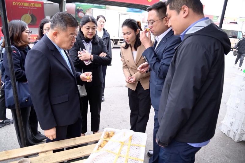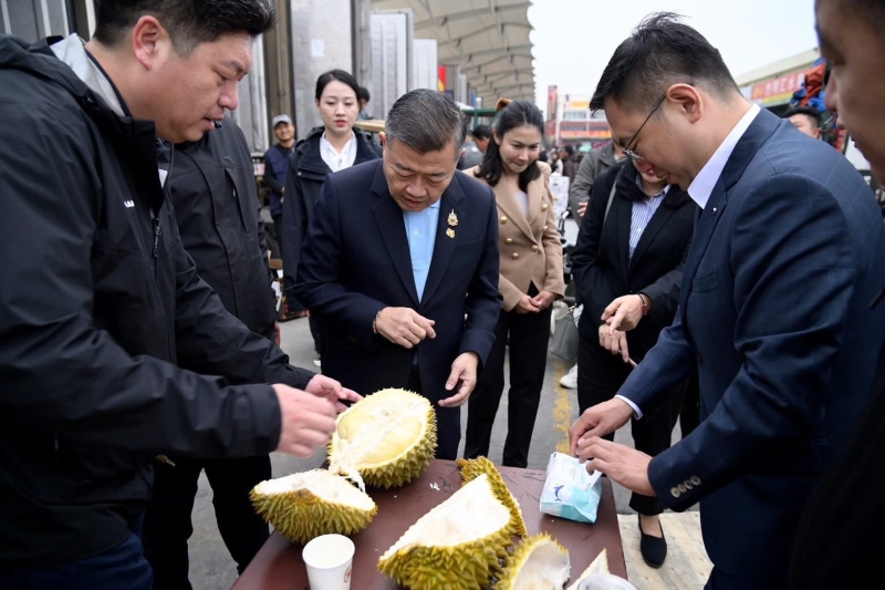 เมื่อวันที่ 16 ตุลาคม 2568 นายวิณะโรจน์ ทรัพย์ส่งสุข ปลัดกระทรวงเกษตรและสหกรณ์ เปิดเผยภายหลังได้รับมอบหมายจาก ร้อยเอก ธรรมนัส พรหมเผ่า รองนายกรัฐมนตรีและรัฐมนตรีว่าการกระทรวงเกษตรและสหกรณ์ ให้เดินทางลงพื้นที่ศึกษาดูงานและหารือแนวทางการส่งเสริมและสนับสนุนสินค้าเกษตรของไทยในตลาดจีน โดยมี นางสาวนฤมล สงวนวงศ์ รองปลัดกระทรวงเกษตรและสหกรณ์ พร้อมด้วยนางสาวไปรยา เศวตจินดา ผู้อำนวยการสำนักการเกษตรต่างประเทศ และเจ้าหน้าที่ที่เกี่ยวข้อง ร่วมคณะ ณ ตลาดเกาเปยเตี้ยน (Gaobeidian Market) มณฑลเหอเป่ย สาธารณรัฐประชาชนจีน ว่า ในการหารือกับผู้บริหารระดับสูงของตลาดเกาเปยเตี้ยน มุ่งเน้นการแลกเปลี่ยนความคิดเห็นเกี่ยวกับกระบวนการควบคุมคุณภาพและมาตรฐานการผลิตสินค้าเกษตรของไทย โดยเฉพาะ ทุเรียน ซึ่งเป็นสินค้า ที่ได้รับความนิยมสูงในตลาดจีน ทั้งนี้ ไทยให้ความสำคัญในการรักษามาตรฐานการผลิตในระดับสากล และมีความพร้อมในการส่งออกสินค้าเกษตรคุณภาพสูงไปยังตลาดจีนอย่างต่อเนื่อง