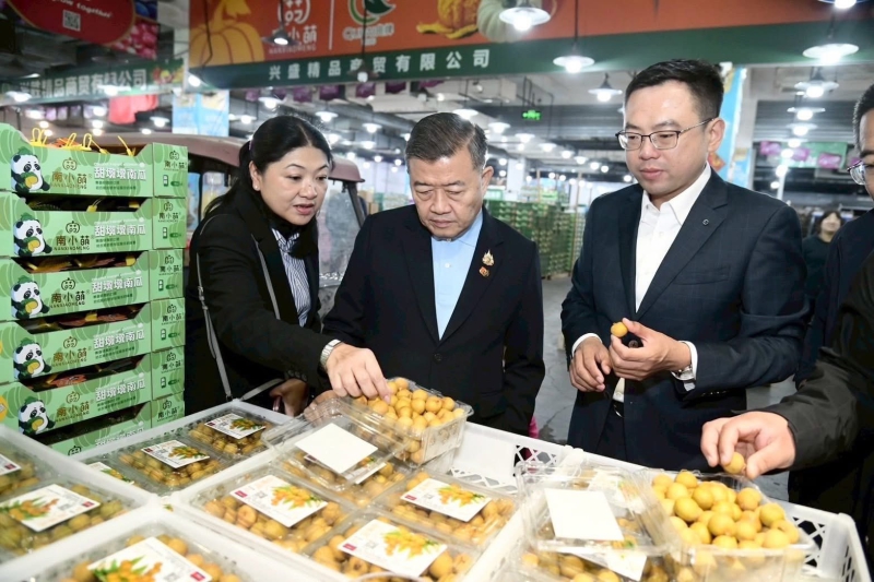 ในโอกาสนี้ ปลัดกระทรวงเกษตรและสหกรณ์ ได้มีการเยี่ยมชมสินค้าของไทยได้แก่ ทุเรียน ลำไย มะพร้าวและกุ้งปรุงสุกแช่แข็งจากสงขลา พร้อมพูดคุยกับผู้ประกอบการนำเข้าสินค้าเกษตรของไทยรายใหญ่ รวมถึงสอบถามปัญหาอุปสรรค ซึ่งได้รับทราบข้อมูล สินค้าของไทยมีคุณภาพดี รสชาติที่แตกต่าง พร้อมทั้งขอให้ประเทศไทยให้ความสำคัญกับเรื่องมาตรฐานและความปลอดภัยเพื่อให้มั่นใจว่าสินค้าที่ส่งไปยังผู้บริโภคจีนมีคุณภาพและมีความปลอดภัย อีกทั้ง กระทรวงเกษตรฯ เน้นย้ำในเรื่องคุณภาพมาตรฐาน โดยกระทรวงได้มีคณะทำงาน เพื่อกำกับดูแลให้สินค้าเกษตรเป็นไปตามมาตรฐาน พร้อมสร้างความมั่นใจให้แก่ผู้บริโภค