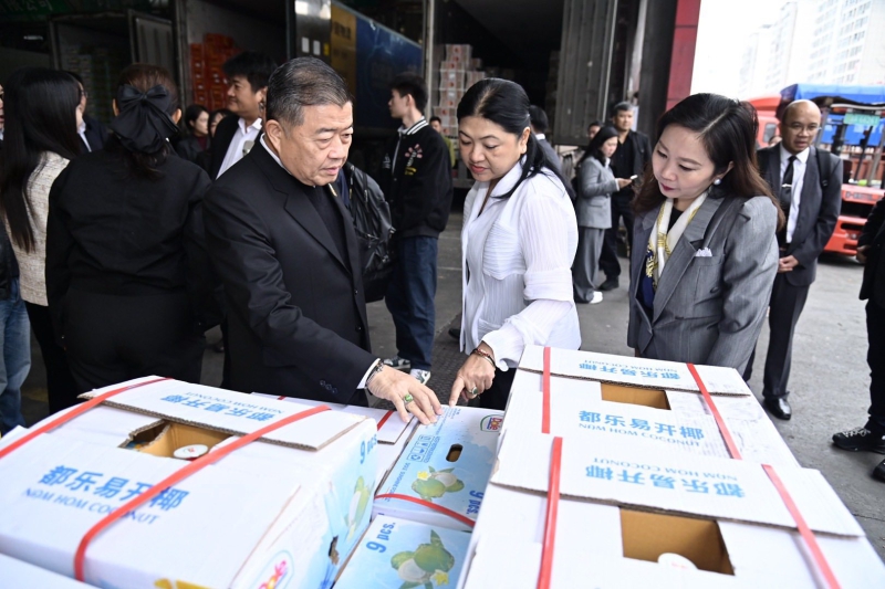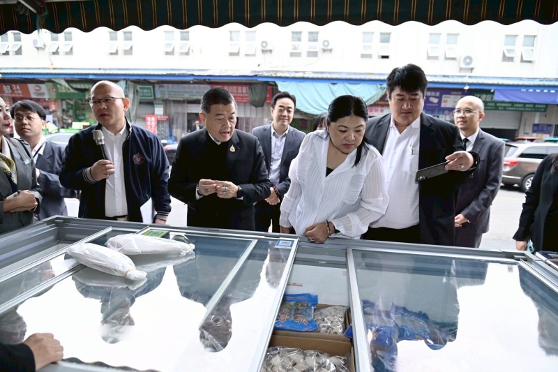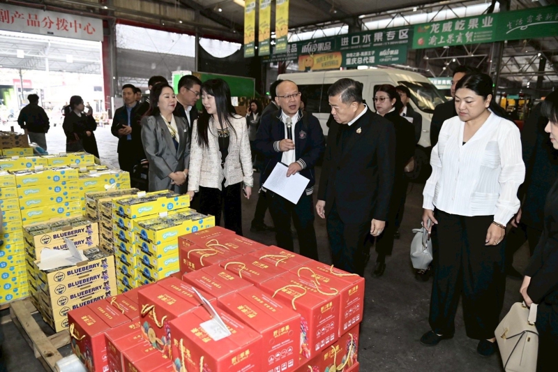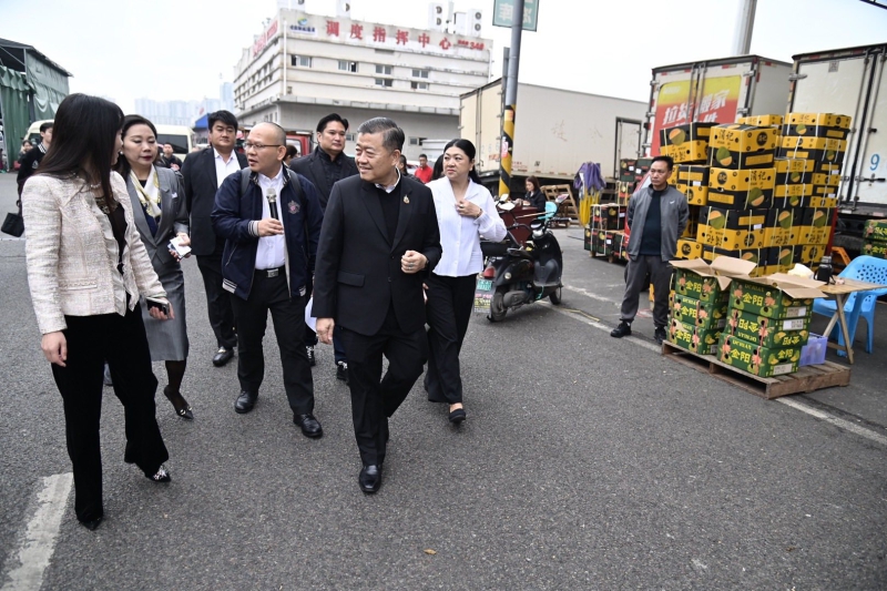 เมื่อวันพุธที่ 12 พฤศจิกายน 2568 นางสาวนฤมล สงวนวงศ์ รองปลัดกระทรวงเกษตรและสหกรณ์ ร่วมติดตามนายวิณะโรจน์ ทรัพย์ส่งสุข ปลัดกระทรวงเกษตรและสหกรณ์ และคณะผู้บริหารระดับสูงของกระทรวงเกษตรและสหกรณ์ ลงพื้นที่เยี่ยมชมการดำเนินงานของตลาดค้าส่งสินค้าเกษตรนานาชาติซวงฝู ฉงชิ่ง (Chongqing Shuangfu International Agricultural Products Wholesale Market) มณฑลฉงชิ่ง สาธารณรัฐประชาชนจีน ซึ่งเป็นตลาดค้าส่งที่ใหญ่ที่สุดและเป็นศูนย์กระจายสินค้าหลักของภาคตะวันตกของจีน เพื่อศึกษาระบบบริหารจัดการ ทั้งด้านโลจิสติกส์ คลังสินค้าห้องเย็นที่ทันสมัย และการควบคุมคุณภาพของสินค้าเกษตรก่อนกระจายไปยังมณฑลต่าง ๆ รวมทั้งการหารือการขยายตลาดส่งออกสินค้าเกษตรและผลิตภัณฑ์สัตว์น้ำระหว่างสองประเทศ โดยมีรองผู้อำนวยการเขตจางจิน ผู้บริหารตลาดชวงฝู และผู้ประกอบการนำเข้าสินค้าเกษตรและผลิตภัณฑ์สัตว์น้ำ จากไทยร่วมหารือ