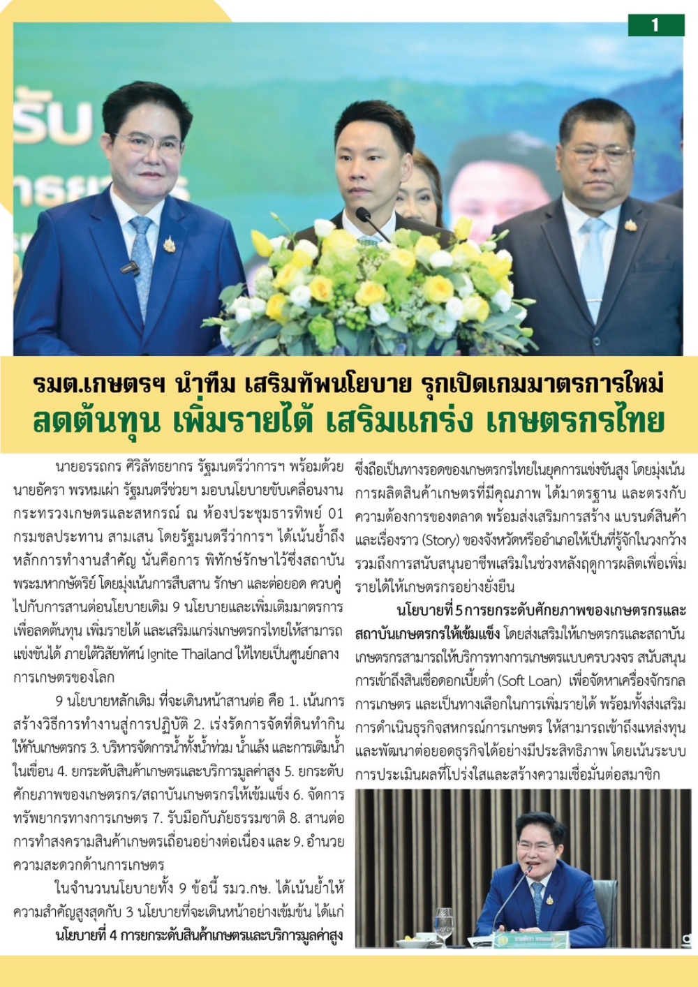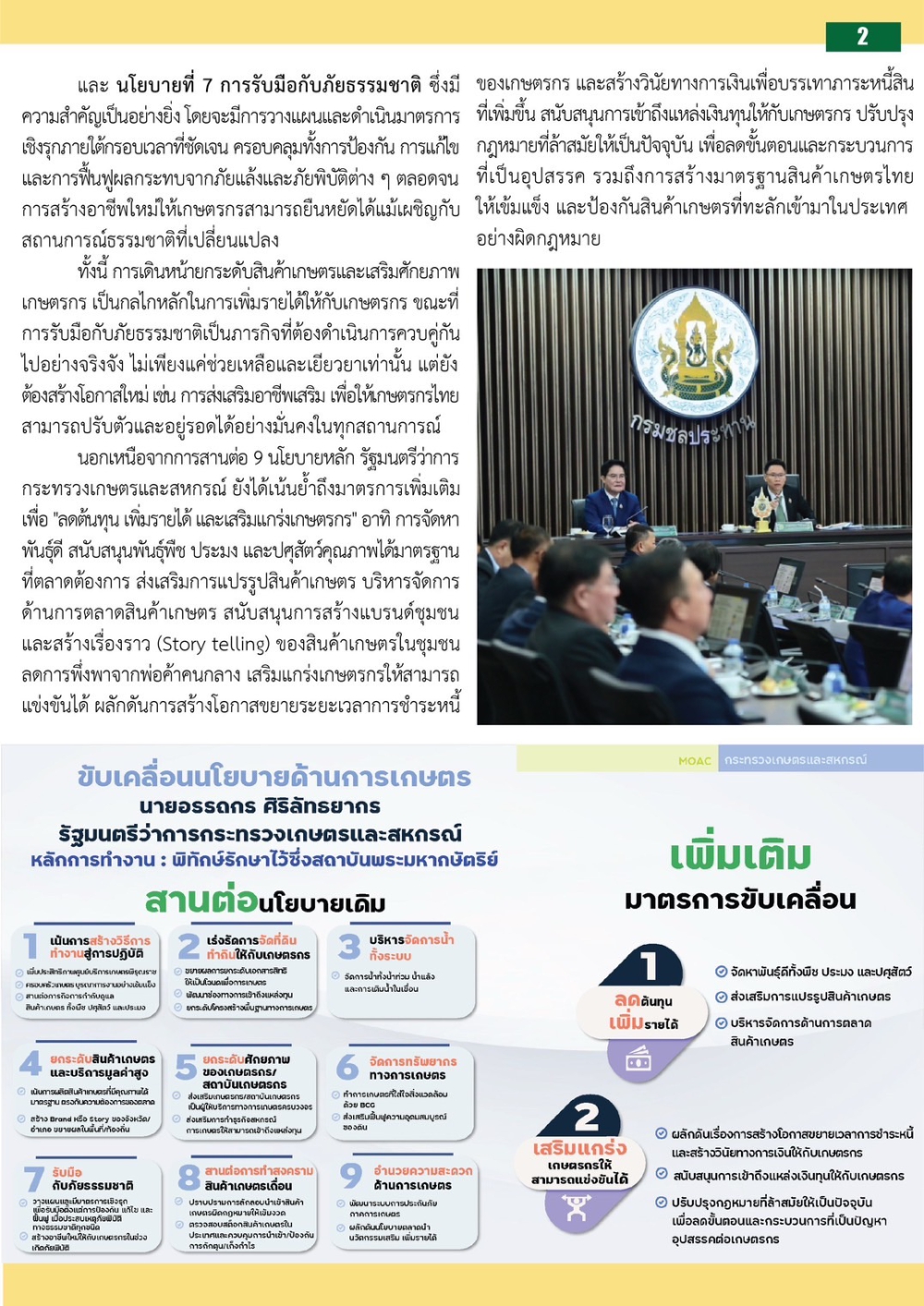 นโยบายสำคัญของกระทรวงเกษตรและสหกรณ์