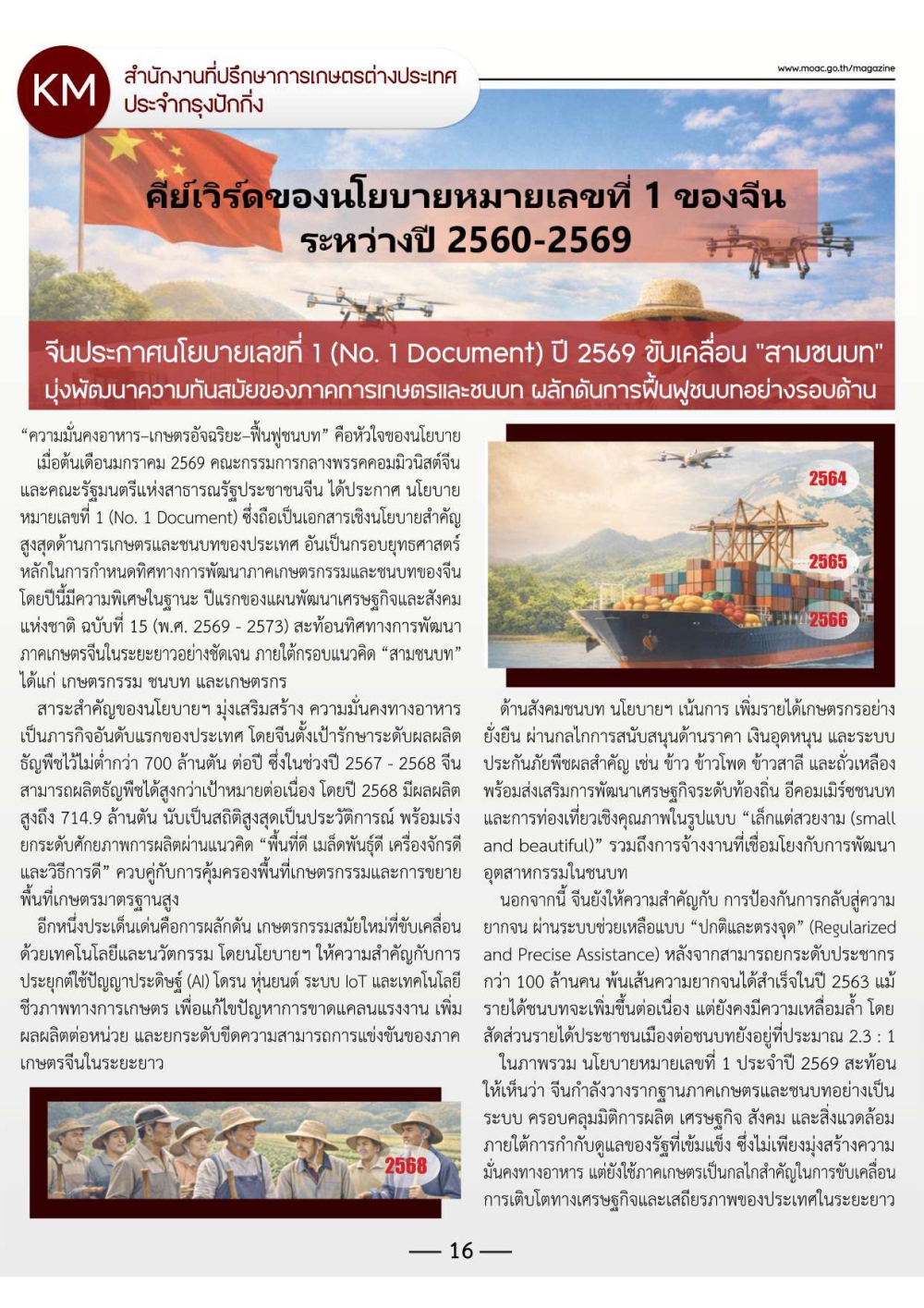 นโยบายสำคัญของกระทรวงเกษตรและสหกรณ์