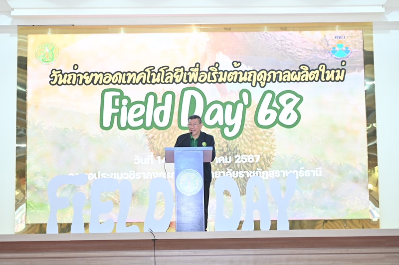 นายอิทธิ ศิริลัทธยากร รัฐมนตรีช่วยว่าการกระทรวงเกษตรและสหกรณ์ เป็นประธานเปิดงานวันถ่ายทอดเทคโนโลยี (Field Day) ปี 2568 โดยมี คณะที่ปรึกษารัฐมนตรีเกษตรฯ นางสาวอนงค์นาถ จ่าแก้ว เลขานุการรัฐมนตรีว่าการกระทรวงเกษตรและสหกรณ์ นายประยูร อินสกุล ปลัดกระทรวงเกษตรและสหกรณ์ นายบันดาล สถิรชวาล รองผู้ว่าราชการจังหวัดสุราษฎร์ธานี ตลอดจนผู้บริหารกระทรวงเกษตรและสหกรณ์ หัวหน้าส่วนราชการ เข้าร่วม ณ หอประชุมวชิราลงกรณ์ มหาวิทยาลัยราชภัฏสุราษฎร์ธานี ถนนสุราษฎร์-นาสาร ตำบลขุนทะเล อำเภอเมืองสุราษฎร์ธานี จังหวัดสุราษฎร์ธานี