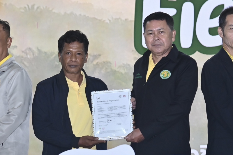 โอกาสนี้ รมช.อิทธิ ได้มอบเอกสาร RSPO ให้แก่กลุ่มเกษตรกร จำนวน 5 กลุ่ม และมอบสินเชื่อเงินกองทุน สปก. เพื่อซื้อปัจจัยการผลิตแก่เกษตรกรในเขตปฎิรูปที่ดิน จำนวน 20 รายๆ ละ 50,000 บาท วงเงินกู้ 1 ล้านบาท
