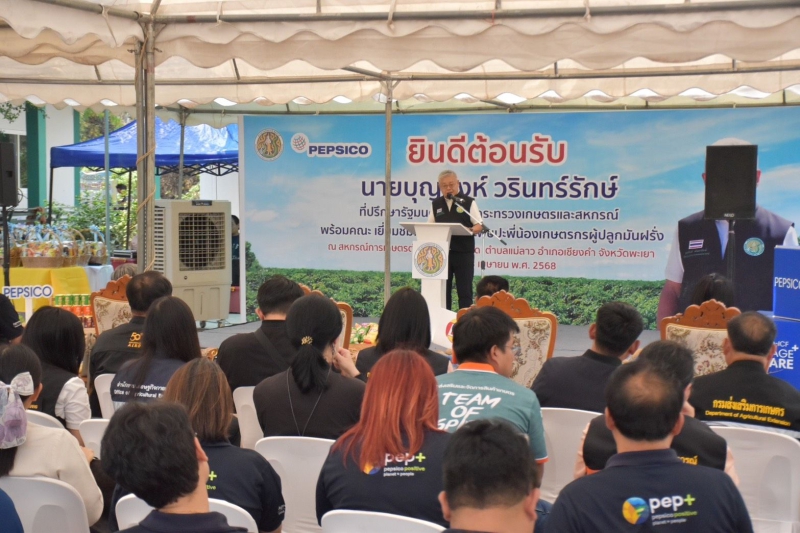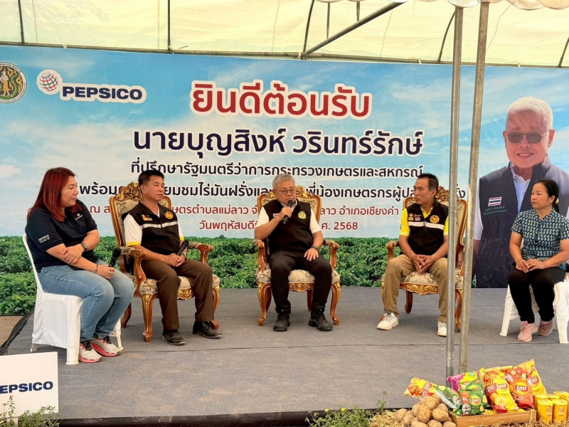 นายบุญสิงห์ วรินทร์รักษ์ ที่ปรึกษารัฐมนตรีว่าการกระทรวงเกษตรและสหกรณ์ การลงพื้นที่เยี่ยมชมแปลงมันฝรั่งตันแบบเพื่อพบปะเกษตรกรผู้ปลูกมันฝรั่ง ณ ตำบลแม่ลาว อำเภอเชียงคำ จังหวัดพะเยา ซึ่งเป็นแปลงของเกษตรกรที่ได้รับการอบรมตามหลักสูตรการจัดการห่วงโซอุปทานข้าวและมันฝรั่งเพื่อรับมือกับการเปลี่ยนแปลงทางสภาพภูมิอากาศของ GIZ และผ่านการอบรมหลักสูตร Sustainable Farming Program โดยเน้นเรื่องการผลิตมันฝรั่งที่ปลอดภัย ทั้งต่อเกษตรกรผลผลิต และสิ่งแวดล้อม นั้น บริษัท เปีปซี่-โคล่า (ไทย) เทรดดิ้ง จำกัด เป็นหนึ่งในบริษัทผู้รับซื้อผลผลิตมันฝรั่งจากเกษตรกรภายใต้ระบบเกษตรพันธสัญญา (Contract Farmine) มีการประกันราคารับซื้อที่แน่นอน บริษัทฯมีการพัฒนาเทคโนโลยีการเพิ่มประสิทธิภาพการผลิตเพื่อเพิ่มผลผลิต ลดต้นทุนการผลิต ให้ความสำคัญต่อการเปลี่ยนแปลงสภาพภูมิอากาศ และให้ความร่วมมือกับหน่วยงานราชการในการพัฒนาเกษตรกรผู้ปลูกมันฝรั่งเป็นอย่างดี บริษัทฯ มีความมุ่งมั่นในการพัฒนาเกษตรกรและเตรียมความพร้อมในการรับมือกับการเปลี่ยนแปลงสภาพภูมิอากาศ เพื่อให้การผลิตมันฝรั่งในประเทศไทยเกิดความยั่งยืน ร่วมกับองค์การความร่วมมือระหว่างประเทศของเยอรมัน ประจำประเทศไทย (GIZ) และหน่วยงานราชการ ได้แก่ กรมวิชาการเกษตร กรมการข้าว สำนักงานเศรษฐกิจการเกษตรและกรมส่งเสริมการเกษตร ดำเนินงานโครงการการจัดการห่วงโซ่อุปทานข้าวและมันฝรั่งเพื่อรับมือกับการเปลี่ยนแปลงทางสภาพภูมิอากาศ ด้วยวิธีการปลูกข้าว มันฝรั่ง และข้าวโพดหมุนเวียนอย่างยั่งยืน มุ่งเน้นเรื่องการรักษ์สิ่งแวดล้อมโดยไม่เผาตอชัง และเพิ่มประสิทธิภาพการผลิตมันฝรั่งด้วยการให้น้ำแบบหยดได้ดำเนินการกับเกษตรกร