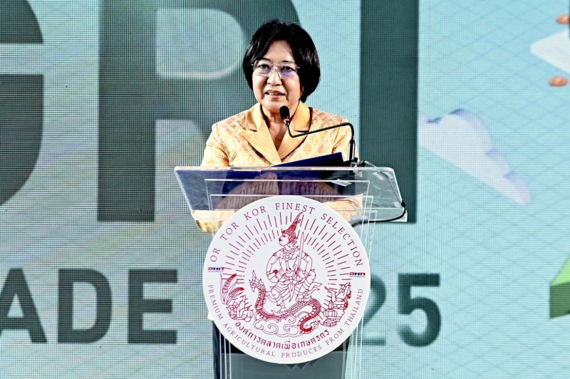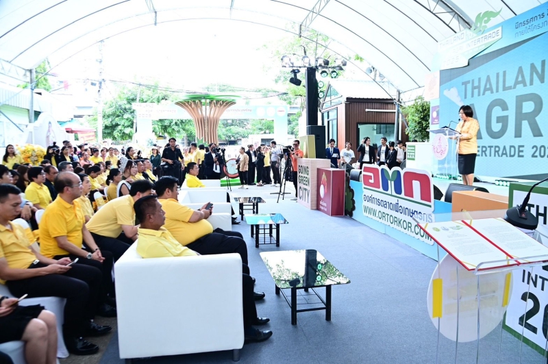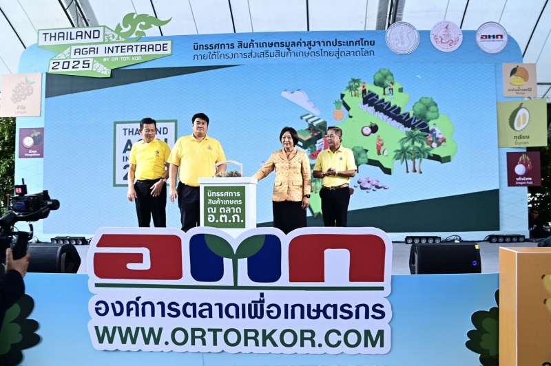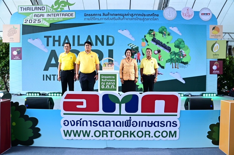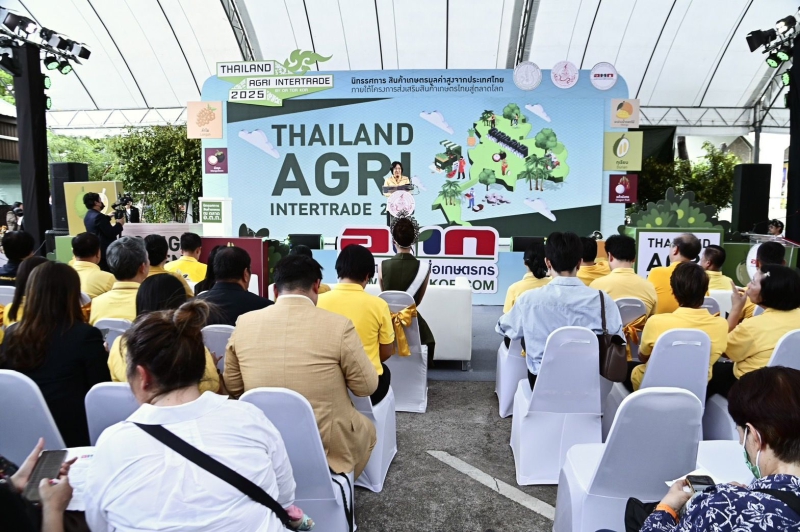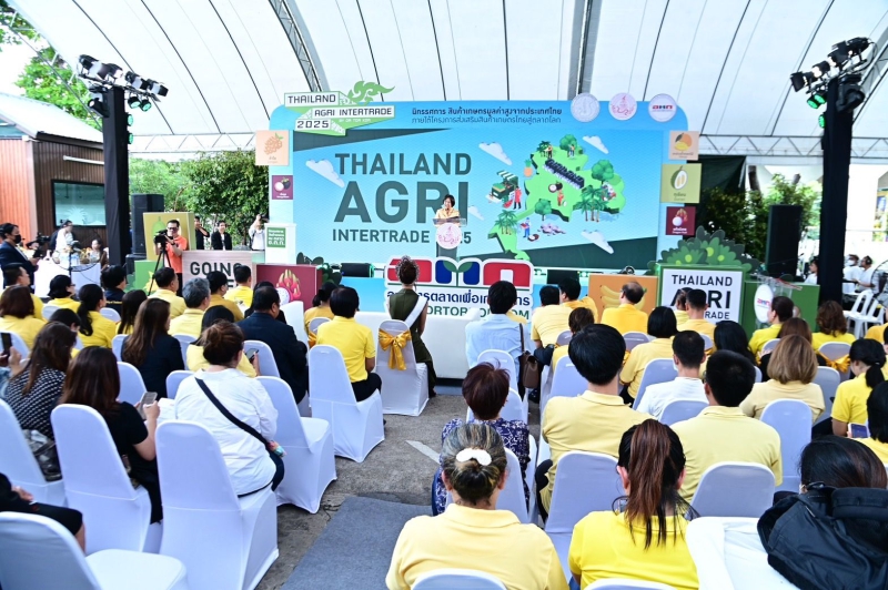 นางสาวภัทราภรณ์ โสเจยยะ รองปลัดกระทรวงเกษตรและสหกรณ์ เป็นประธานพิธีเปิดงาน “Thailand Agri Intertrade 2025” ที่กำหนดจัดขึ้นระหว่างวันที่ 24 – 27 กรกฎาคม 2568 ณ ตลาด อ.ต.ก. ถนนกำแพงเพชร กรุงเทพฯ ที่รวบรวมสินค้าเกษตรพรีเมียมจากเกษตรกรทั่วประเทศมาไว้ให้ผู้บริโภคเลือกซื้อได้อย่างสะดวกในราคาสุดพิเศษกว่า 40 บูธ มาจัดแสดงและจัดจำหน่าย พร้อมสัมผัสบรรยากาศการตลาดแบบ “Market Experience” ที่รวมไว้ทั้งสินค้า รสชาติ วิถีชีวิต และวัฒนธรรม เพื่อสร้างความสัมพันธ์ระหว่างเกษตรกรและผู้บริโภคให้แน่นแฟ้นยิ่งขึ้น ผ่านกิจกรรมที่น่าสนใจมากมายให้ผู้บริโภคได้เพลิดเพลินอิ่มท้องและอิ่มใจตั้งแต่เวลา 10.00 – 18.00 น. ตลอด 4 วันเต็ม ไม่ว่าจะเป็น คอนเสิร์ตจากศิลปินชื่อดัง อาทิ ก้านตอง ทุ่งเงิน กุ้ง สุทธิราช และตรี ชัยณรงค์ รวมถึงการโชว์ตัวจากหมูแฮม นางสาวไทยปี 2568 การแสดงมายากล การแสดงกายกรรมคอมมาดี้ การเสวนาการเลือกซื้อสินค้าเกษตร กิจกรรมช้อปผลไม้นาทีทอง การแข่งขันปอกผลไม้ และบุฟเฟ่ต์ทุเรียนสุดฟิน เป็นต้น