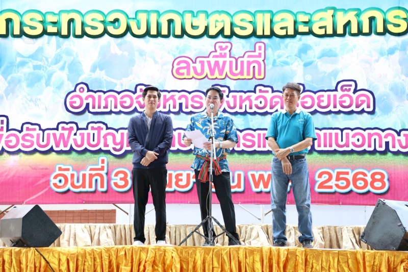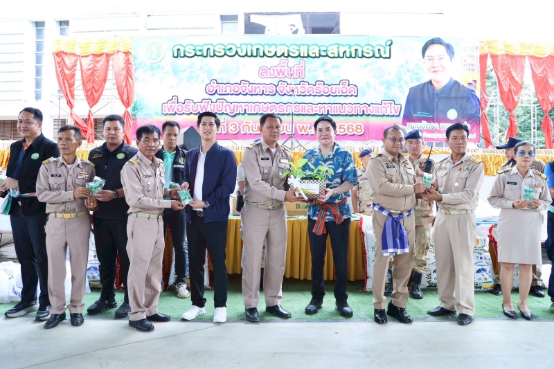 สำหรับกิจกรรมภายในงาน ได้มีการมอบพันธุ์ปลา อาทิ ปลาบึก กุ้งก้ามกราม สวาย และปลาหรด พันธุ์ผัก 4 ชนิด ไข่ไก่ ชุด 4 ฟอง พันธุ์หม่อน ปุ๋ยอินทรีย์อัดเม็ดสูตรน้ำหมักปลาหมอคางดำ เป็นต้น พร้อมรับฟังปัญหาจากเกษตรกรและประชาชนในพื้นที่ อาทิ ปัญหาที่ดินทำกิน และการพัฒนาแหล่งน้ำ เป็นต้น ทั้งนี้ ได้มอบหมายทุกหน่วยงานในสังกัด บูรณาการการทำงานร่วมกับท้องที่ท้องถิ่น ดำเนินการแก้ไขปัญหาในส่วนที่เกี่ยวข้องต่อไป