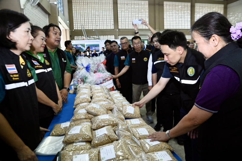 ทั้งนี้ รัฐมนตรีว่าการกระทรวงเกษตรฯ ได้มอบเมล็ดพันธุ์ผัก เมล็ดพันธุ์ปอเทือง เมล็ดพันธุ์ถั่วเหลือง พันธุ์ปลา เมล็ดพันธุ์ข้าว โฉนดเพื่อการเกษตรและโฉนดต้นยางพารา รวมถึงอาหารสัตว์และเวชภัณฑ์สัตว์ เสบียงอาหารสัตว์ จำนวน 5,000 กิโลกรัม เพื่อช่วยบรรเทาความเดือดร้อนแก่เกษตรกรผู้ประสบภัย ตลอดเยี่ยมชมหน่วยบริการทำหมันสุนัขและแมวเคลื่อนที่ และนิทรรศการของหน่วยงานในสังกัด