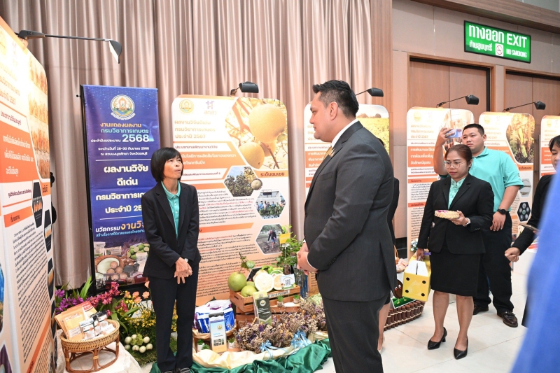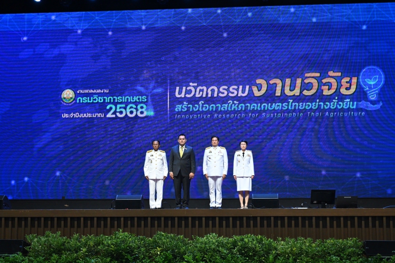 นายอามินทร์ มะยูโซ๊ะ รัฐมนตรีช่วยว่าการกระทรวงเกษตรและสหกรณ์ เป็นประธานพิธีเปิดงานแถลงผลงานกรมวิชาการเกษตร ประจำปีงบประมาณ 2568 ภายใต้แนวคิด “นวัตกรรมงานวิจัย สร้างโอกาสให้ภาคเกษตรไทยอย่างยั่งยืน” Innovative Research for Sustainable Thai Agriculture ที่จัดขึ้นระหว่างวันที่ 28 – 30 กันยายน 2568 โดยมี นายรพีภัทร์ จันทรศรีวงศ์ อธิบดีกรมวิชาการเกษตร ผู้บริหารกรมวิชาการเกษตร ที่ปรึกษา ผู้เชี่ยวชาญ นักวิชาการ เจ้าหน้าที่ ทั้งภายในและภายนอกกรมวิชาการเกษตร รวมถึงเกษตรกรและผู้สนใจ เข้าร่วม ณ ห้องประชุม Tradition Hall สวนนงนุช พัทยา จังหวัดชลบุรี ซึ่งกระทรวงเกษตรฯ โดยกรมวิชาการเกษตร จัดงานดังกล่าวขึ้น เพื่อเป็นเวทีสนับสนุน กระตุ้น และผลักดัน ให้บุคลากรของกรมวิชาการเกษตร มีการพัฒนาสร้างสรรค์ผลงานใหม่ ๆ ให้ตรงกับความต้องการของกลุ่มเป้าหมาย และเกิดการใช้ประโยชน์เป็นวงกว้าง ก่อให้เกิดประโยชน์ต่อการพัฒนาภาคเกษตรอย่างต่อเนื่อง
