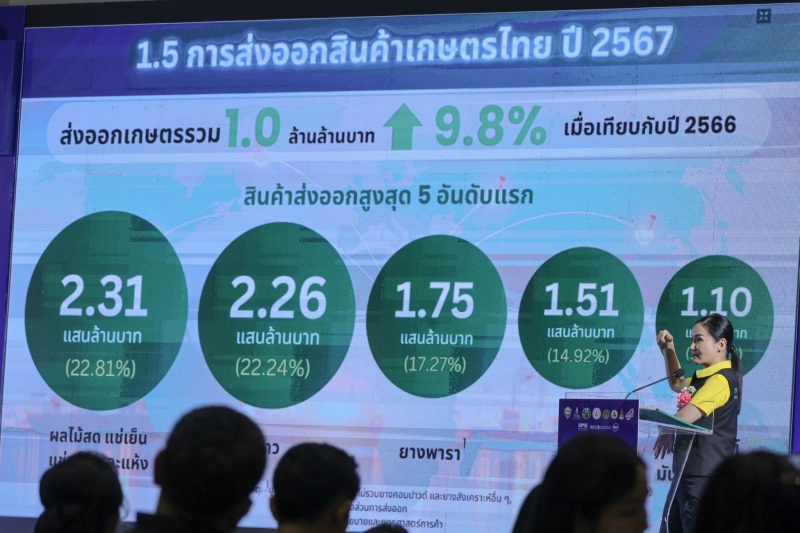 "จากสถานการณ์ด้านการเกษตรของไทย ข้อมูลจากสำนักงานสภาพัฒนาการเศรษฐกิจและสังคมแห่งชาติจะเห็นได้ว่าค่า GDP ภาคการเกษตร ในปี 2566 มีสัดส่วนอยู่ที่ร้อยละ 8.58 ซึ่งเป็นตัวเลขที่นับจากผลผลิตทางการเกษตรผลสด ยังไม่รวมผลผลิตแปรรูปที่เข้าไปอยู่ในภาคอุตสาหกรรมอาหารอีกร้อยละ 6.3 อีกทั้ง ยังมีภาคอุตสาหกรรมอื่น ๆ อาทิ ยางพารา ล้อรถ และอื่น ๆ ซึ่งหากรวมกัน ภาคการเกษตรอาจมีสัดส่วน GDP ถึงร้อยละ 30 นอกจากนี้ การส่งออกสินค้าเกษตรไทย ปี 2567 มีการส่งออกสูงถึง 1 ล้านล้านบาท เติบโตขึ้นร้อยละ 9.8 เมื่อเทียบกับปี 2566 โดยสินค้าส่งออกสูงสุด ได้แก่ ผลไม้สดแช่เย็น ข้าว ยางพารา ไก่ ผลิตภัณฑ์มันสำปะหลัง และมีตลาดส่งออกสูงสุด ได้แก่ จีน ญี่ปุ่น สหรัฐอเมริกา มาเลเซีย และอินโดนีเซีย อีกทั้ง การส่งออกสินค้าอุตสาหกรรมเกษตรไทย ปี 2567 มีการส่งออกรวม 8.2 แสนล้านบาท เติบโตขึ้นร้อยละ 6.3 เมื่อเทียบกับปี 2566 โดยมีสินค้าส่งออกสูงสุด ได้แก่ อาหารทะเลกระป๋องแปรรูป อาหารสัตว์เลี้ยง ผลิตภัณ์ข้าวสาลี และอาหารสำเร็จรูปอื่น ๆ น้ำตาลทราย ผลไม้กระป๋องแปรรูป ซึ่งส่งออกไปยังสหรัฐอเมริกา จีน ญี่ปุ่น กัมพูชา และเมียนมาร์ จึงถือได้ว่าเกษตรกรเป็นต้นน้ำของวัตถุดิบสินค้าในประเทศ" รมว.นฤมล กล่าวเพิ่มเติม