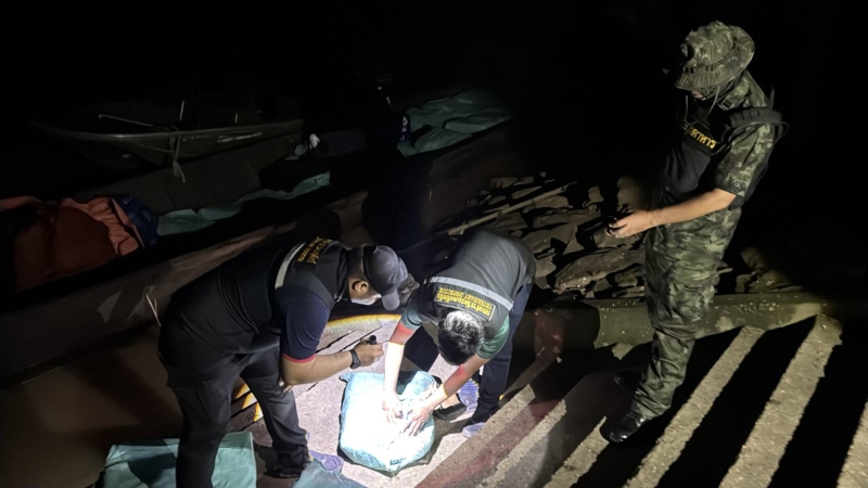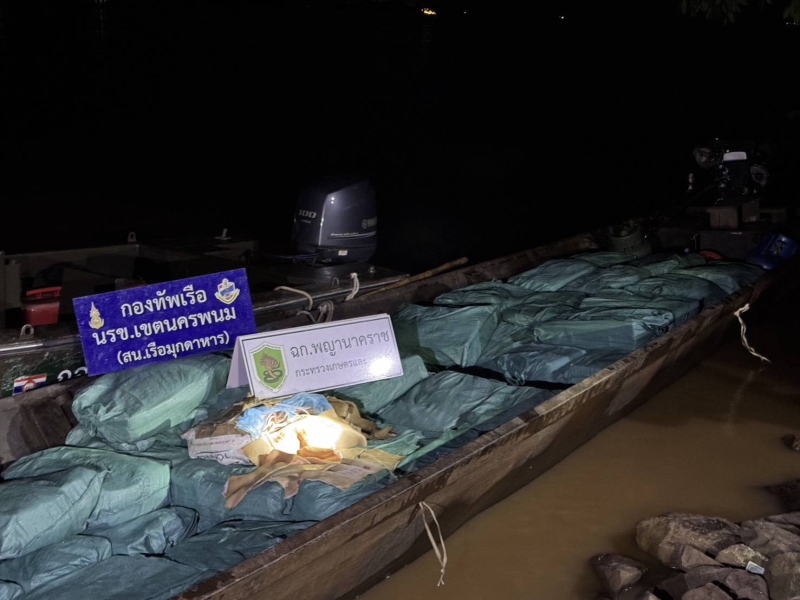 พันเอก รวิรักษ์ สัตตบุศย์ ผู้บังคับหน่วยเฉพาะกิจพญานาคราช เปิดเผยว่า เมื่อวันที่ 2 ตุลาคม 2568 ฉก.พญานาคราช นำโดยด่านกักกันสัตว์มุกดาหาร ร่วมกับ นรข.เขตนครพนม (สน.เรือมุกดาหาร) ด่านตรวจพืชมุกดาหาร ด่านตรวจประมงมุกดาหาร ด่านศุลกากรมุกดาหาร ทหารพราน 2105 ตำรวจน้ำมุกดาหาร และหน่วยงานความมั่นคงในพื้นที่ร่วมบูรณาการป้องกันและปราบปรามการลักลอบนำเข้า-ส่งออก รวมถึงซุกซ่อนสินค้าเกษตรเถื่อนตามแนวชายแดนแม่น้ำโขง ได้รับแจ้งจากสายข่าวมีการลักลอบขนซากสุกรมาจากประเทศเพื่อนบ้าน จากการซุ่มและติดตามพบเรือยนต์บรรทุกกระสอบสีเขียวเต็มลำ เจ้าหน้าที่จึงแสดงตัวเพื่อเข้าตรวจสอบ จากการตรวจสอบพบซากสุกร (หนังสุกร) จำนวน 112 กล่อง น้ำหนัก 2,240 กิโลกรัม มูลค่าประมาณ 112,000 บาท ในช่วงที่เจ้าหน้าที่ปฏิบัติการสกัดจับ ผู้ต้องหาได้ทิ้งเรือและอาศัยความมืดหลบหนีการจับกุมไปได้ และจากการตรวจสอบพบกว่าซากสุกรดังกล่าวระบุแหล่งที่มาจากต่างประเทศ และไม่มีผู้ใดแสดงตนเป็นเจ้าของ มีฐานความผิดมาตรา 31 พ.ร.บ.โรคระบาดสัตว์ พ.ศ.2558 และ มาตรา 242 พ.ร.บ. ศุลกากร 2560 จึงได้ทำการยึดอายัดเพื่อตรวจสอบ และ นรข.มุกดาหาร ได้ทำบันทึกตรวจยึดส่งด่านศุลกากรมุกดาหารและได้ลงบันทึกประจำวันไว้เป็นหลักฐานที่สถานีตำรวจภูธรเมืองมุกดาหารเพื่อดำเนินการในส่วนที่เกี่ยวข้องต่อไป