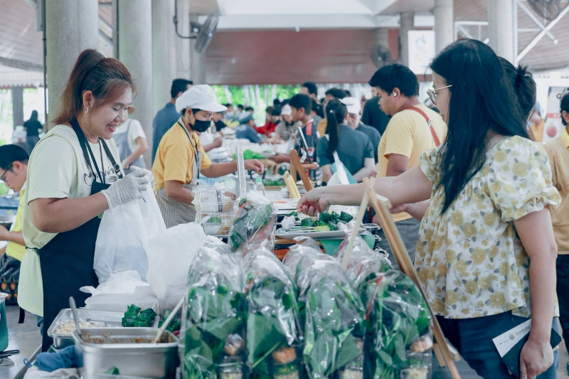 นิทรรศการ “สำรับไทยสุขภาพกายใจและลายผ้า” ซึ่งรวมองค์ความรู้เรื่องอาหารไทยที่เปี่ยมคุณค่าและสรรพคุณสมุนไพรพื้นบ้าน ถ่ายทอดภูมิปัญญาการปรุงสำรับอาหารที่ไม่เพียงอร่อย แต่ยังดีต่อสุขภาพ ทั้งเมนูอาหารไทยโบราณ อาหารพื้นถิ่น และเมนูสร้างสรรค์ที่ต่อยอดจากภูมิปัญญาเดิม พร้อมกิจกรรมสาธิต “ครัวไทยพอเพียง” ให้ผู้เข้าชมได้เรียนรู้การเลือกวัตถุดิบปลอดภัยจากเกษตรอินทรีย์ เพื่อสร้างสุขภาวะกายใจอย่างยั่งยืน และต่อด้วยนิทรรศการ “วิถีสายน้ำ ภูมิปัญญาผ้าไทย” ถ่ายทอดเรื่องราวของสายน้ำในฐานะแหล่งชีวิตและความมั่นคงของชุมชน ผ่านสององค์ความรู้สำคัญของภูมิปัญญาท้องถิ่นไทย ได้แก่ การแปรรูปปลา และ ศิลปะผ้าย้อมธรรมชาติ ซึ่งผู้มาเข้าชมงานจะได้เรียนรู้วิถีชีวิตของชุมชนที่พึ่งพิงทรัพยากรธรรมชาติ ทั้งการจับปลา การถนอมอาหาร การสร้างรายได้จากผลิตภัณฑ์ปลา ตลอดจนการย้อมสีผ้าด้วยวัสดุธรรมชาติจากพืชท้องถิ่น ซึ่งผ้าแต่ละผืนสะท้อนอัตลักษณ์ของชุมชนและความคิดสร้างสรรค์ที่ผสานกับธรรมชาติอย่างงดงาม ในด้าน “ภูมิปัญญาผ้าไทย” ถ่ายทอดเรื่องราวของผ้าไทยในฐานะมรดกภูมิปัญญาอันล้ำค่า ผ่านลวดลาย สีสัน และเทคนิคการทอที่แสดงถึงเอกลักษณ์ของแต่ละภูมิภาค พร้อมกิจกรรมสาธิตการย้อมผ้า การสกรีนลายลงผืนผ้า และการประยุกต์ผ้าไทยให้เข้ากับการใช้ชีวิตประจำวันอย่างสร้างสรรค์