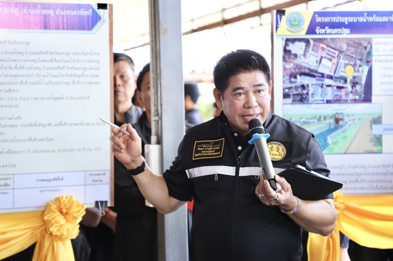นอกจากนี้ ร้อยเอก ธรรมนัส ได้ให้สัมภาษณ์กับทางสื่อมวลชนว่า การลงพื้นที่อำเภอนครชัยศรีในวันนี้ เพื่อตรวจสถานที่ก่อสร้างโครงการประตูระบายน้ำแม่น้ำท่าจีน บริเวณโรงพยาบาลห้วยพลู จังหวัดนครปฐม ที่ได้รับผลกระทบ จากน้ำท่วมขัง สร้างความเดือดร้อนต่อผู้ป่วยและชุมชนกว่า 200 ครัวเรือน ซึ่งได้สั่งการให้กรมชลประทาน เร่งก่อสร้างโครงการดังกล่าว ภายในปีงบประมาณ 2569 เพื่อยุติความเดือดร้อนเฉพาะหน้าของพี่น้องในพื้นที่ ในส่วนมาตรการ ระยะยาวต้องเร่ง แก้ไขปัญหาลำน้ำตื้นเขินทั่วประเทศ ไม่ว่าจะเป็นแม่น้ำสายหลัก (ปิง วัง ยม น่าน) หรือสาขาย่อย ทั้งนี้ ตนได้มอบหมายให้ กรมชลประทานบูรณาการความร่วมมือกับกรมเจ้าท่า กระทรวงคมนาคม และกระทรวงกลาโหม เพื่อดึงศักยภาพเครื่องมือ และบุคลากรจากหน่วยที่มีความเชี่ยวชาญมาปฏิบัติการขุดลอกพร้อมกันทั่วประเทศอย่างเต็มรูปแบบ เพื่อเพิ่มประสิทธิภาพ การระบายน้ำให้ได้สูงสุด ในส่วนการบริหารจัดการน้ำในภาพรวม ได้สั่งการให้ศูนย์ปฏิบัติการน้ำอัจฉริยะ (SWOC) เป็นแกนกลางในการดูแลด้านน้ำอย่างเป็นระบบ โดยอ้างอิงข้อมูลจริงเท่านั้น เพื่อให้การสื่อสารต่อสาธารณะ มีความแม่นยำ และป้องกันความสับสนของพี่น้องประชาชน นอกจากนี้ จะเร่งแก้ไขราคาข้าวตกต่ำ โดยจะนำเรื่องเข้าที่ประชุม คณะรัฐมนตรี และคณะกรรมการนโยบายข้าวแห่งชาติ (นบข.) เพื่อทบทวนและกำหนดหลักการใหม่ในการรับซื้อข้าวที่ยุติธรรม ภายในวันที่ 24 พฤศจิกายน นี้