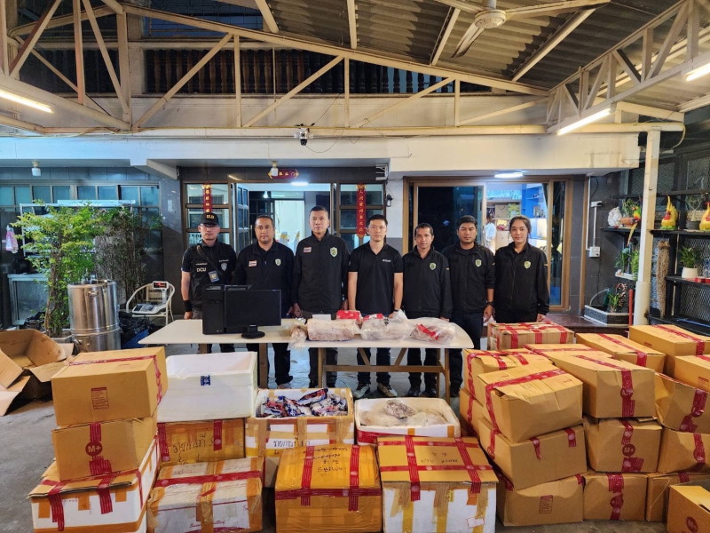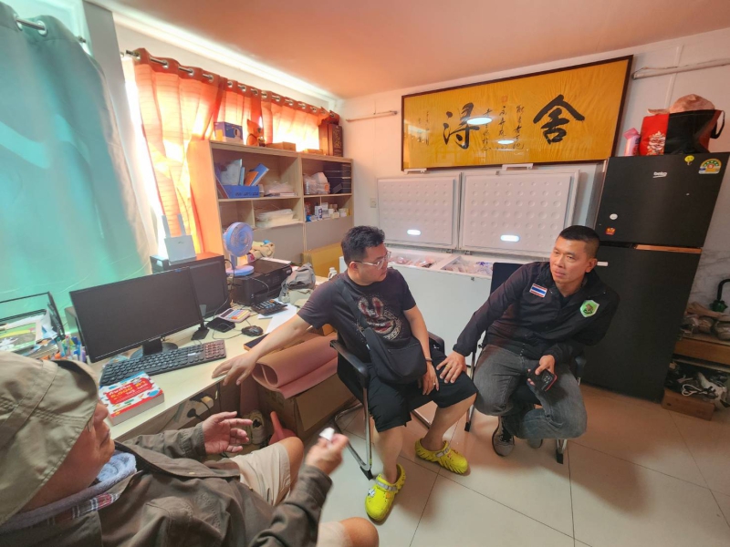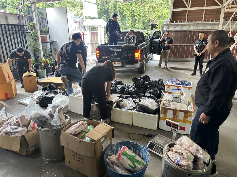 พลตำรวจตรี มนตรี แป้นเจริญ ผู้อำนวยการศูนย์เฉพาะกิจสืบสวนปราบปรามการกระทำผิดที่เกี่ยวข้องกับการเกษตร (ฉก.พญานาคราช) เปิดเผยภายหลังมอบหมายพันเอก รวิรักษ์ สัตตบุศย์ หัวหน้าฝ่ายปฏิบัติการ ฉก.พญานาคราช เข้าตรวจสอบปราบปรามสินค้าเกษตรผิดกฎหมาย โดยเมื่อวันที่ 26 พฤศจิกายน 2568 เวลาประมาณ 11.00 น. “ฉก.พญานาคราช” นำโดย พันตำรวจเอกสราวุฒิ ปรีดากรณ์ หัวหน้าส่วนควบคุมและสืบสวน ฝ่ายปฏิบัติการ ฉก.พญานาคราช พร้อมด้วยเจ้าหน้าที่กรมปศุสัตว์ เจ้าหน้าที่ส่วนงานเสริมความมั่นคงด้านสิ่งแวดล้อม พลังงาน และอาหาร ศูนย์ประสานการปฏิบัติที่ 4 กองอำนวยการรักษาความมั่นคงภายในราชอาณาจักร เจ้าหน้าที่ตำรวจ กองกำกับการสืบสวน กองบังคับการตรวจค้นเข้าเมือง 1 และเจ้าหน้าที่กองทะเบียนจัดหางานกลางและคุ้มครองคนหางาน บูรณาการความร่วมมือหลังได้รับแจ้งว่ามีการค้าซากสัตว์ผิดกฎหมายในพื้นที่รัชดาซอย 17 สุทธิสาร-ห้วยขวาง กรุงเทพมหานคร ซึ่งภายหลังเข้าตรวจสอบอาคารเลขที่ 368 อาคารบางกอกรัชดา 17 ชั้นที่ 8 ห้องเลขที่ 1806 ซอยอินทามระ 47 แขวงดินแดง เขตดินแดง กรุงเทพมหานคร พบว่าเป็นที่ตั้งบริษัท โกลบอล แลนด์ กรุ๊ป จำกัด ทะเบียนนิติบุคคลเลขที่ 0105568059721 กรรมการของบริษัทมี 3 คน ได้แก่ 1. นางสาวทิวาวัลย์ จินดาพาณิชย์ 2. นางสาวพิริยา บุญมากปาน และ 3. นายเหว่ยเข็ง เหยียน จึงได้แจ้งนิติบุคคลเพื่อขอเข้าตรวจสอบ โดยภายในห้องเลขที่ 1806 พบนาย YAN WEISHENG (ทราบชื่อภายหลัง) อายุ 49 ปี สัญชาติจีน แสดงตนเป็นเจ้าของห้อง และพบนางสาว KHOEUT SOPHANRO (ทราบชื่อภายหลัง) อายุ 33 ปี สัญชาติกัมพูชา อยู่ในห้องดังกล่าว โดยนาย YANฯ ได้ยินยอมให้พนักงานเจ้าหน้าที่เข้าตรวจสอบ