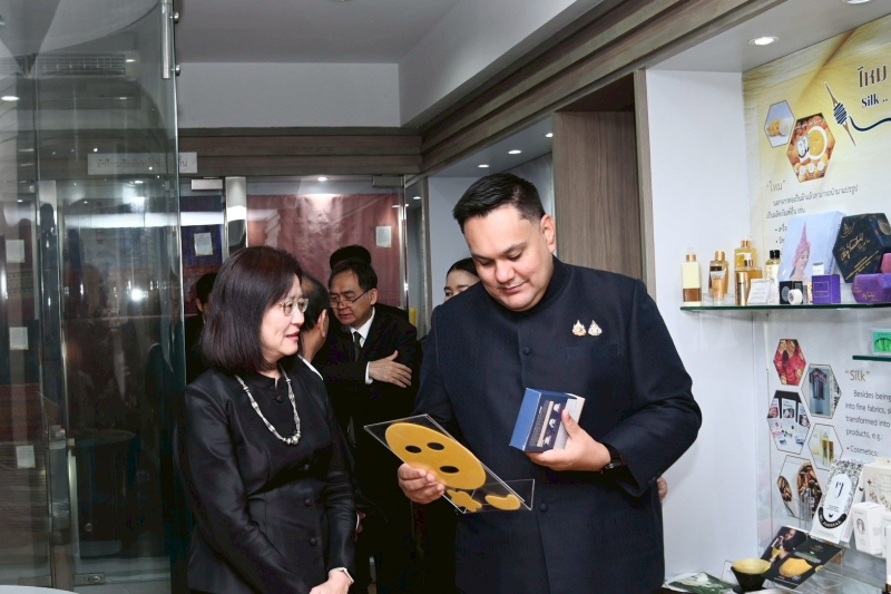 ด้าน นางอัญชลี สุวจิตตานนท์ อธิบดีกรมหม่อนไหม กล่าวเพิ่มเติมว่า กรมหม่อนไหมได้ดำเนินงานตามภารกิจและสนองงานพระราชดำริด้านหม่อนไหม และพัฒนางานด้านหม่อนไหมของประเทศมาอย่างต่อเนื่อง ตั้งแต่ต้นน้ำจนถึงปลายน้ำ ตลอดจนการขับเคลื่อนนโยบายหลักของกระทรวงเกษตรและสหกรณ์ ภายใต้การนำของ ร้อยเอก ธรรมนัส พรหมเผ่า โดยเฉพาะอย่างยิ่งนโยบาย “ตลาดนำ นวัตกรรมเสริม เพิ่มรายได้” มุ่งพัฒนาคุณภาพชีวิตของเกษตรกร เสริมสร้างความมั่นคงในอาชีพเกษตรกรรม ตลอดจนพัฒนาสินค้าผ้าไหมไทยให้เป็นที่ยอมรับ เป็น Soft Power ของไทย ซึ่งในปี 2568 กรมหม่อนไหมได้เดินหน้าส่งเสริมและพัฒนางานหม่อนไหมในด้านต่าง ๆ อาทิ ด้านการอนุรักษ์และสืบสานภูมิปัญญา สามารถรวบรวมและยืนยันสายพันธุ์หม่อนและไหมไทยไว้รวมกันเกือบ 500 สายพันธุ์ นอกจากนี้ ยังถอดแบบลวดลายผ้าอัตลักษณ์ท้องถิ่นได้ถึง 30 ลวดลาย และต่อยอดศูนย์เรียนรู้ไม้ย้อมสีธรรมชาติ ซึ่งรวบรวมพืชให้สีไว้กว่า 300 ชนิด นำมาสู่การท่องเที่ยวเชิงเกษตรและสร้างรายได้จริงให้พี่น้องเกษตรกรไปแล้วกว่า 77 ล้านบาท ด้านวิจัยและนวัตกรรม มีไหมพันธุ์ใหม่ แพร่ 72 (J108 x ละหานทราย) เหมาะสำหรับทำผ้าห่มใยไหม และมีนวัตกรรมทางการแพทย์ งานวิจัยการใช้ไหมพันธุ์ J108 X นางลายสระบุรี ในการช่วย “ฟื้นฟูเต้านมหลังผ่าตัดมะเร็ง” ด้านส่งเสริมเกษตรกรและการตลาด มีการแจกจ่ายต้นหม่อนไปกว่า 2.7 ล้านต้น อีกทั้งยังเน้นการสร้างความเข้มแข็งผ่าน “เกษตรแปลงใหญ่” และโครงการพระราชดำริ สร้างทายาทหม่อนไหมรุ่นใหม่ทั้งในโรงเรียนและชุมชน และด้านมาตรฐานและความเชื่อมั่น กรมหม่อนไหมได้ตรวจรับรองมาตรฐานทั้งแปลงหม่อนและเส้นไหมจำนวนมาก โดยเฉพาะ “ผ้าไหมตรานกยูงพระราชทาน” ที่ให้การรับรองไปกว่า 2 แสน 5 หมื่นเมตร สามารถสร้างมูลค่าตลาดรวมกว่า 710 ล้านบาท ทำให้ไหมไทยมีมูลค่าสูงและเป็นที่ยอมรับในระดับสากล