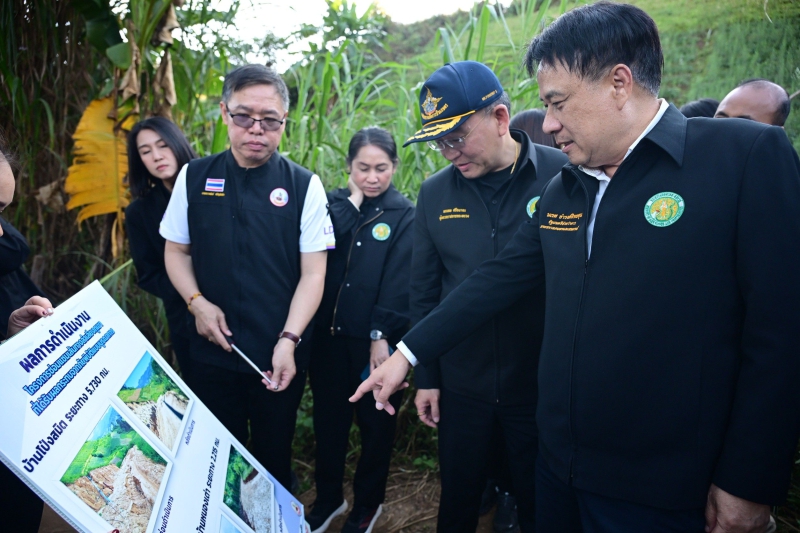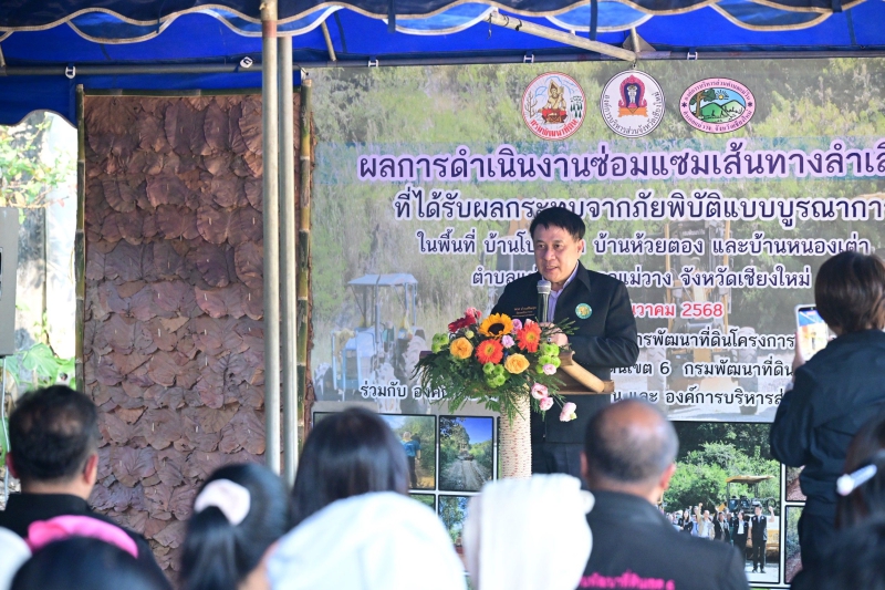 ต่อมา รมช.นเรศ นำคณะเดินทางต่อไปยัง ลานสนามกิจกรรมบ้านโป่งสมิต หมู่ 8 ตำบลแม่วิน อำเภอแม่วาง จังหวัดเชียงใหม่ เพื่อตรวจติดตามข้อสั่งการที่มอบหมายให้กรมพัฒนาที่ดิน โดยศูนย์ปฏิบัติการพัฒนาที่ดินโครงการหลวง (ศพล.) เข้าดำเนินการซ่อมแซมเส้นทางลำเลียงที่ได้รับผลกระทบจากภัยพิบัติ ณ บ้านโป่งสมิต หมู่ 8 บ้านหนองเต่า หมู่ 4 และบ้านห้วยตองหมู่ 10 ตำบลแม่วิน อำเภอแม่วาง จังหวัดเชียงใหม่ โดยที่บ้านโป่งสมิต มีระยะ 5.73 กิโลเมตร บ้านหนองเต่าและบ้านห้วยตอง มีระยะ 2.215 กิโลเมตร รวมทั้งสิ้น 7.945 กิโลเมตร ทั้งนี้ เจ้าหน้าที่ศูนย์พัฒนาโครงการหลวง เจ้าหน้าที่จากองค์การบริหารส่วนตำบลแม่วิน และภาคเอกชนที่ได้ร่วมสนับสนุน หินกรวดกลม บูรณาการเข้าร่วมตรวจสอบสภาพพื้นที่ และแนวทางในการดำเนินการซ่อมแซม เส้นทางลำเลียงภูเขาดังกล่าว จึงได้เกิดการบูรณาการเมื่อวันที่ 18 พฤศจิกายน - 7 ธันวาคม 2568 จนเกิดผลสำเร็จ ทำให้ชาวบ้านกลับมาใช้เส้นทางสัญจรได้ตามปกติ