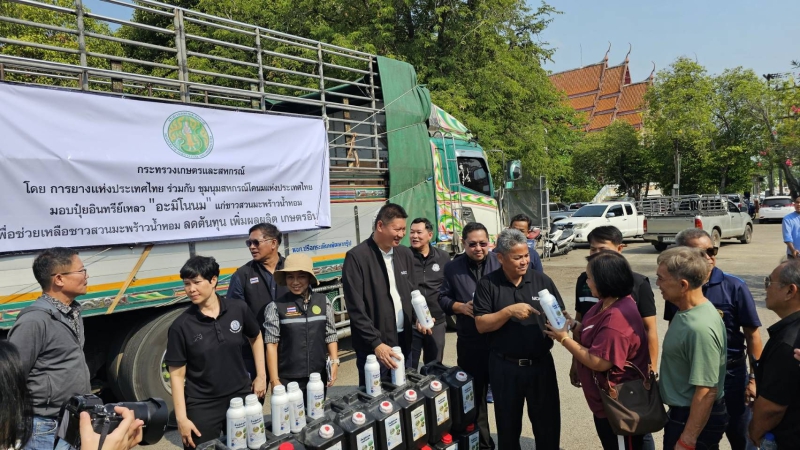 นายอภัย สุทธิสังข์ รองปลัดกระทรวงเกษตรและสหกรณ์ ร่วมกับการยางแห่งประเทศไทยและชุมชนสหกรณ์โคนมแห่งประเทศไทย ลงพื้นที่อำเภอดำเนินสะดวก จังหวัดราชบุรี เพื่อมอบปุ๋ยอินทรีย์เหลว "อะมิโนนม" จำนวน 10,000 ลิตร ให้แก่ชาวสวนมะพร้าวน้ำหอม ซึ่งเป็นการบูรณาการแก้ไขปัญหาผลผลิตน้ำนมดิบส่วนเกินมาแปรรูปเป็นน้ำหมักชีวภาพคุณภาพสูง ช่วยให้เกษตรกรลดการใช้สารเคมีและต้นทุนการผลิต