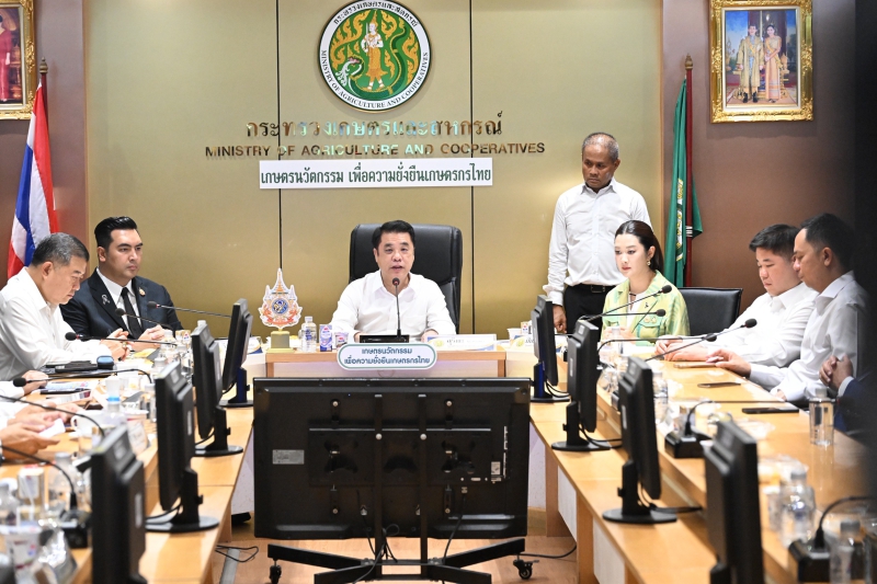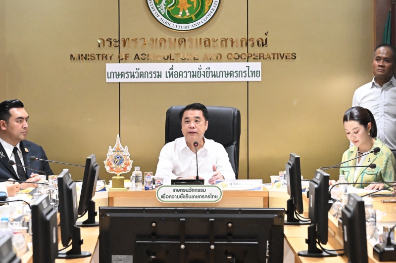 จากนั้นรัฐมนตรีว่าการกระทรวงเกษตรและสหกรณ์เป็นประธานการประชุมผู้บริหารระดับสูงของกระทรวงเกษตรและสหกรณ์ เพื่อมอบนโยบายและแนวทางการขับเคลื่อนการดำเนินงาน “เกษตรนวัตกรรม เพื่อความยั่งยืนเกษตรกรไทย” มุ่งขับเคลื่อนผ่านการบูรณาการระหว่างหน่วยงานภาครัฐและทุกภาคส่วนที่เกี่ยวข้อง เน้นการทำงานเชิงรุก ลดขั้นตอนที่ไม่จำเป็นลง เร่งการนำเทคโนโลยีดิจิทัลมาช่วยในการทำงานให้มีความคล่องตัวมากขึ้น พร้อมอำนวยความสะดวกให้กับเกษตรกรได้อย่างรวดเร็วและมีประสิทธิภาพ โดยมีนโยบายหลักที่จะเร่งผลักดัน 5 ด้าน คือ 1) ยกระดับการผลิตด้วยเทคโนโลยีและนวัตกรรม ปรับเปลี่ยนจากการทำเกษตรแบบดั้งเดิม มาเป็นการใช้เทคโนโลยีสมัยใหม่มากขึ้น โดยผลักดันการใช้ Big Data ร่วมกับเทคโนโลยีดิจิทัล และ AI มาบริหารจัดการการผลิตแบบแม่นยำ เพื่อลดต้นทุนการผลิต เพิ่มผลผลิตต่อหน่วย และเพิ่มคุณภาพมาตรฐานให้สูงขึ้น พร้อมทั้งสนับสนุนให้มีผู้ให้บริการทางการเกษตร หรือ Agriculture Service Provider ในระดับชุมชน เพื่อให้เกษตรกรสามารถเข้าถึงเครื่องจักรกลทางการเกษตรและใช้ประโยชน์จากเทคโนโลยีที่เท่าทันการเปลี่ยนแปลงสภาพภูมิอากาศได้อย่างทั่วถึง ในราคาที่เหมาะสมและเป็นธรรม
