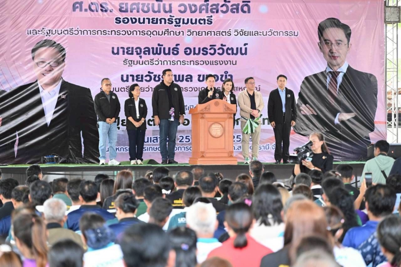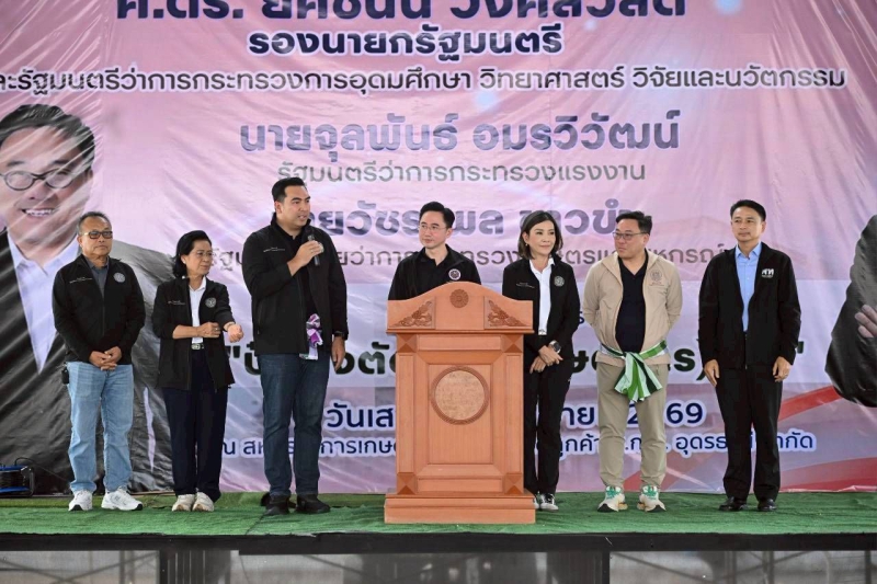 นายวัชระพล ขาวขำ รัฐมนตรีช่วยว่าการกระทรวงเกษตรและสหกรณ์ พร้อมด้วย ศาสตราจารย์ ดร.ยศชนัน วงศ์สวัสดิ์ รองนายกรัฐมนตรี และรัฐมนตรีว่าการกระทรวง อว. และนายจุลพันธ์ อมรวิวัฒน์ รัฐมนตรีว่าการกระทรวงแรงงาน ร่วมเป็นประธานเปิดตัวโครงการ “ปุ๋ยสั่งตัดเพื่อ(เกษตรกร)ไทย” ณ สหกรณ์การเกษตรเพื่อการตลาดลูกค้า ธ.ก.ส. อุดรธานี จำกัด เพื่อเดินหน้าแก้ไขปัญหาต้นทุนการผลิตและสร้างความมั่งคั่งยั่งยืนให้แก่เกษตรกรไทยผ่านนวัตกรรมและการพัฒนาทักษะฝีมือแรงงาน