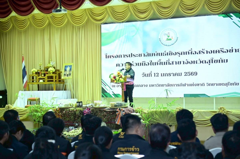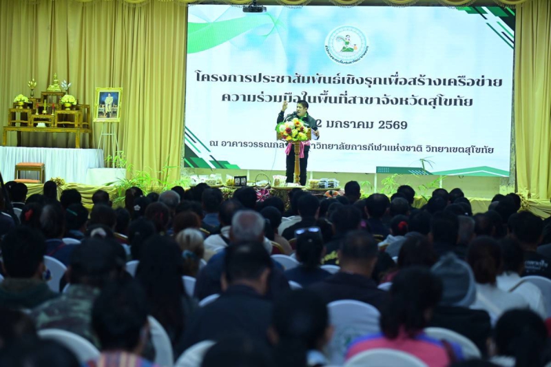 ร้อยเอก ธรรมนัส พรหมเผ่า รองนายกรัฐมนตรีและรัฐมนตรีว่าการกระทรวงเกษตรและสหกรณ์ เป็นประธานเปิดโครงการประชาสัมพันธ์เชิงรุกเพื่อสร้างเครือข่ายความร่วมมือในพื้นที่จังหวัดสุโขทัย ณ มหาวิทยาลัยการกีฬาแห่งชาติ วิทยาเขตสุโขทัย โดยมีวัตถุประสงค์หลักเพื่อปรับเปลี่ยนกระบวนทัศน์การทำงานของภาครัฐจากการตั้งรับสู่การสื่อสารเชิงรุก มุ่งเน้นการสร้างความเข้าใจเกี่ยวกับบทบาทและภารกิจของกองทุนฟื้นฟูและพัฒนาเกษตรกร (กฟก.) ให้แก่สมาชิกและหน่วยงานที่เกี่ยวข้องกว่า 1,000 คน ซึ่งถือเป็นการนำนโยบายไปสู่การปฏิบัติในระดับพื้นที่เพื่อลดช่องว่างระหว่างภาครัฐกับเกษตรกร และหลีกเลี่ยงการรวมตัวเรียกร้องในส่วนกลางโดยไม่จำเป็น