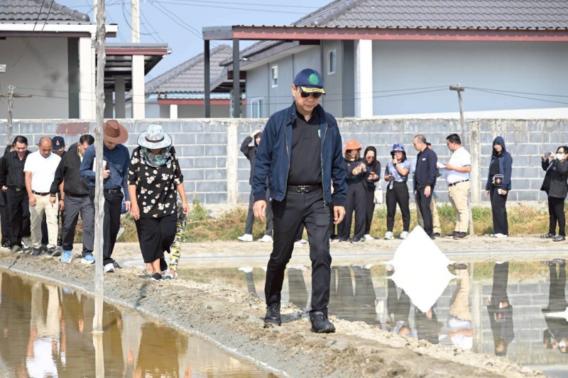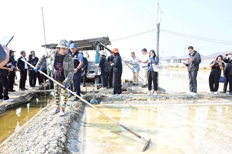 จากนั้น รองปลัดกระทรวงเกษตรและสหกรณ์ ลงพื้นที่ติดตามสถานการณ์เกลือทะเล ณ แปลงนาเกลือทะเลของเกษตรกร จังหวัดชลบุรี ซึ่งเป็น 1 ใน 7 จังหวัดแหล่งผลิตเกลือทะเลที่สำคัญ เพื่อสื่อสารนโยบายและมาตรการแก้ไข ปัญหาด้านการผลิตและการตลาดเกลือทะเลของภาครัฐ ให้เกษตรกรได้รับทราบโดยตรง ตั้งแต่ต้นน้ำจนถึงปลายน้ำ พร้อมรับฟังข้อคิดเห็น ข้อเสนอแนะ และปัญหาเชิงพื้นที่จากเกษตรกร เพื่อนำไปสู่การดำเนินการแก้ไขปัญหาเกลือทะเลไทยให้เป็นไปอย่างมีประสิทธิภาพ