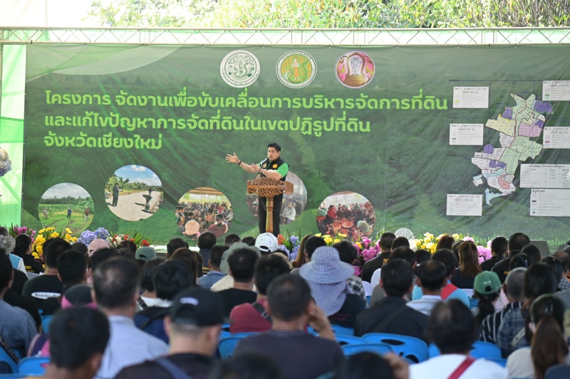 ทั้งนี้ โครงการจัดที่ดินทำกินให้ชุมชนตามนโยบายของรัฐบาล พื้นที่สำนักงานการปฏิรูปที่ดินเพื่อเกษตรกรรม (ส.ป.ก.) แปลงสวนส้ม จังหวัดเชียงใหม่ มีเนื้อที่ 5,958 ไร่ ครอบคลุมพื้นที่ตำบลสันต้นหมื้อ ตำบลบ้านหลวง อำเภอแม่อาย และตำบลเวียง อำเภอฝาง เป็นพื้นที่ที่ได้มาจากการยึดคืนตามคำสั่งหัวหน้าคณะรักษาความสงบแห่งชาติ ที่ 36/2559 โดย ส.ป.ก. ได้นำที่ดินดังกล่าวมาจัดสรรในรูปแบบของคณะกรรมการนโยบายที่ดินแห่งชาติ (คทช.) คือ การจัดที่ดินทำกินและที่อยู่อาศัยให้ประชาชนผู้ยากไร้ใช้ประโยชน์ในพื้นที่ของรัฐ โดยเน้นการอนุญาตให้เข้าทำประโยชน์แบบรวมกลุ่มเป็นสหกรณ์หรือชุมชน แต่ไม่ให้กรรมสิทธิ์ เพื่อแก้ปัญหาการบุกรุก ลดความเหลื่อมล้ำ ควบคู่กับการพัฒนาระบบสาธารณูปโภค และส่งเสริมความมั่นคงในการประกอบอาชีพ