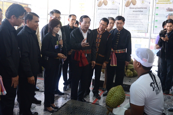 พลเอก ฉัตรชัย สาริกัลยะ รัฐมนตรีว่าการกระทรวงเกษตรและสหกรณ์ ตรวจติดตามงานตามนโยบาย ณ สหกรณ์การเกษตรกันทรลักษ์ จำกัด จ.ศรีษะเกษ รับฟังรายงานผลการดำเนินงานแปลงใหญ่ โคเนื้อ ทุเรียน พร้อมทั้งเยี่ยมชมการดำเนินการรับซื้อและจัดส่งทุเรียนพรีเมี่ยมของสหกรณ์การเกษตรกันทรลักษณ์ เมื่อวันที 16 มิถุนายน 2560
