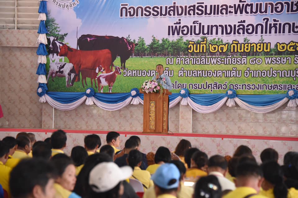 นายเฉลิมชัย ศรีอ่อน รัฐมนตรีว่าการกระทรวงเกษตรและสหกรณ์ เป็นประธานในพิธีเปิดโครงการส่งเสริมและพัฒนาโคนมไทย ภายใต้กิจกรรมส่งเสริมและพัฒนาอาชีพด้านการเลี้ยงสัตว์ เพื่อเป็นทางเลือกให้เกษตรกร ณ ศาลาเฉลิมพระเกียรติ 80 พรรษา รัชกาลที่ 9 วัดหนองตาแต้ม อำเภอปราณบุรี จังหวัดประจวบคีรีขันธ์ โดยมี นายสัตวแพทย์สรวิศ ธานีโต อธิบดีกรมปศุสัตว์ พร้อมด้วย นายอำพันธุ์ เวฬุตันติ รองอธิบดีกรมปศุสัตว์ และประชาชนกว่า 1,000 คนให้การต้อนรับ พร้อมกันนี้ได้มอบปัจจัยการผลิตให้แก่ตัวแทนเกษตรกรทั้ง 8 ราย จากนั้น เยี่ยมชมฐานการเรียนรู้ ทั้ง 5 ฐาน โดยมีวัตถุประสงค์เพื่อเป็นแนวทางการเลือกอาชีพที่มั่นคง เกิดการรวมของเครือข่ายกลุ่มอาชีพการเลี้ยงสัตว์ อันจะเป็นการสร้างความเข้มแข็งเกษตรกรอย่างยั่งยืนต่อไป วันที่ 27 กันยายน 2562