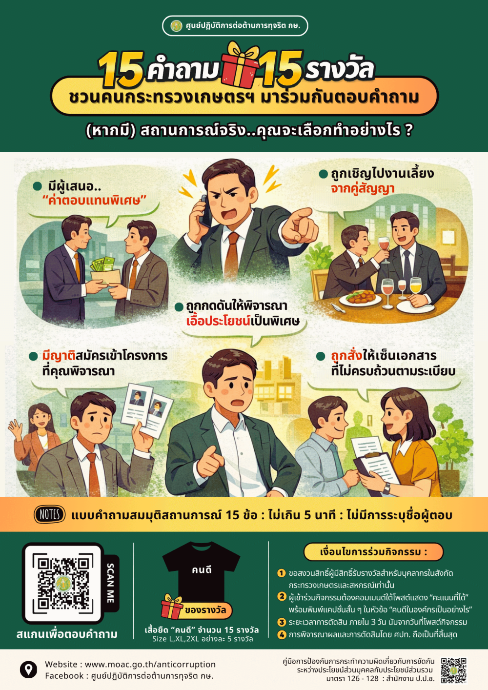 (มี.ค. 69) 15 คำถาม 15 รางวัล ชวนคนกระทรวงเกษตรฯ มาร่วมกันตอบคำถาม (หากมี) สถานการณ์จริง..คุณจะเลือกทำอย่างไร?
