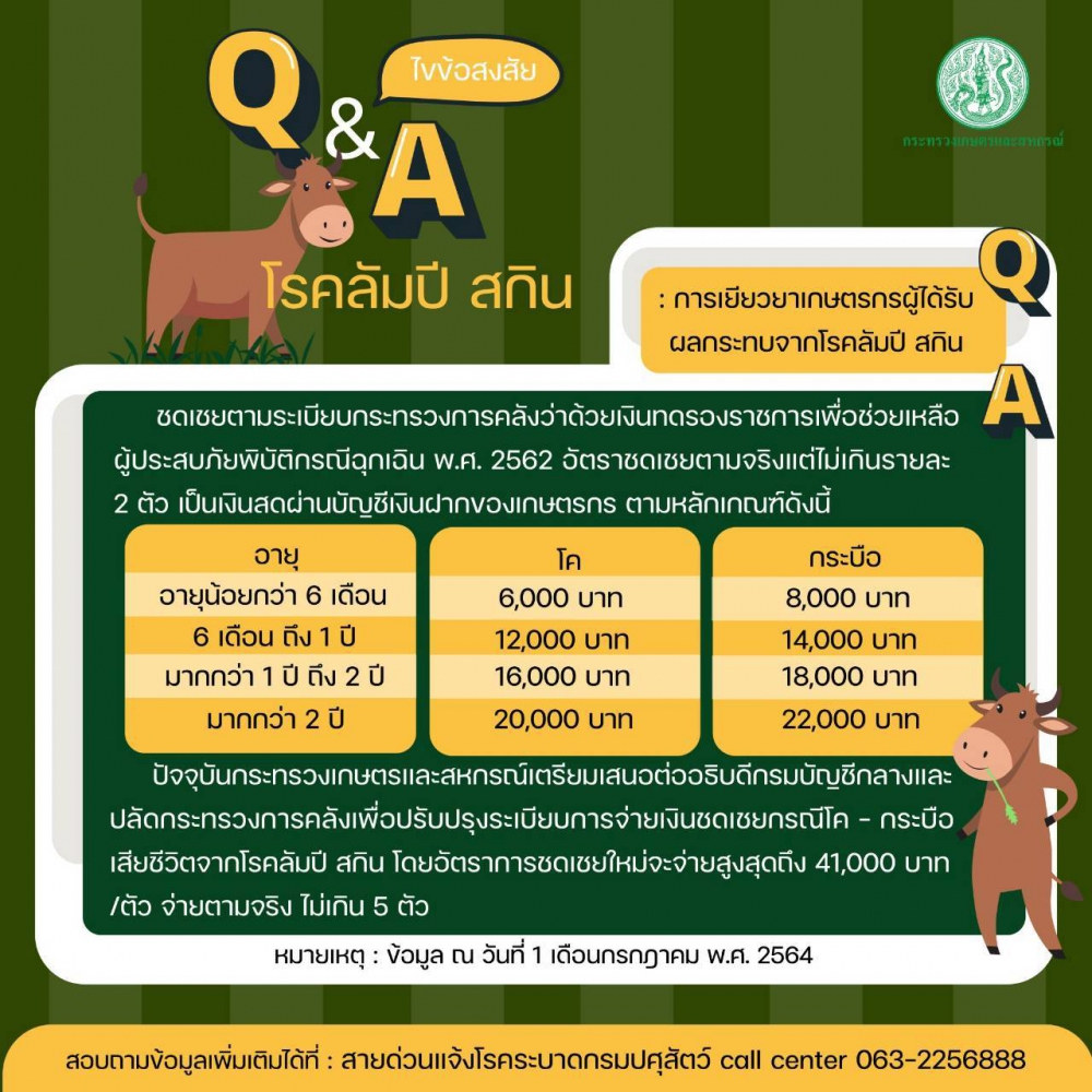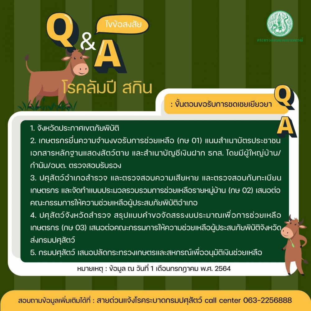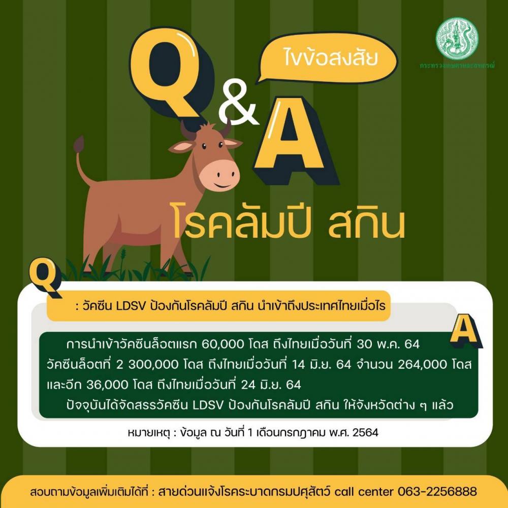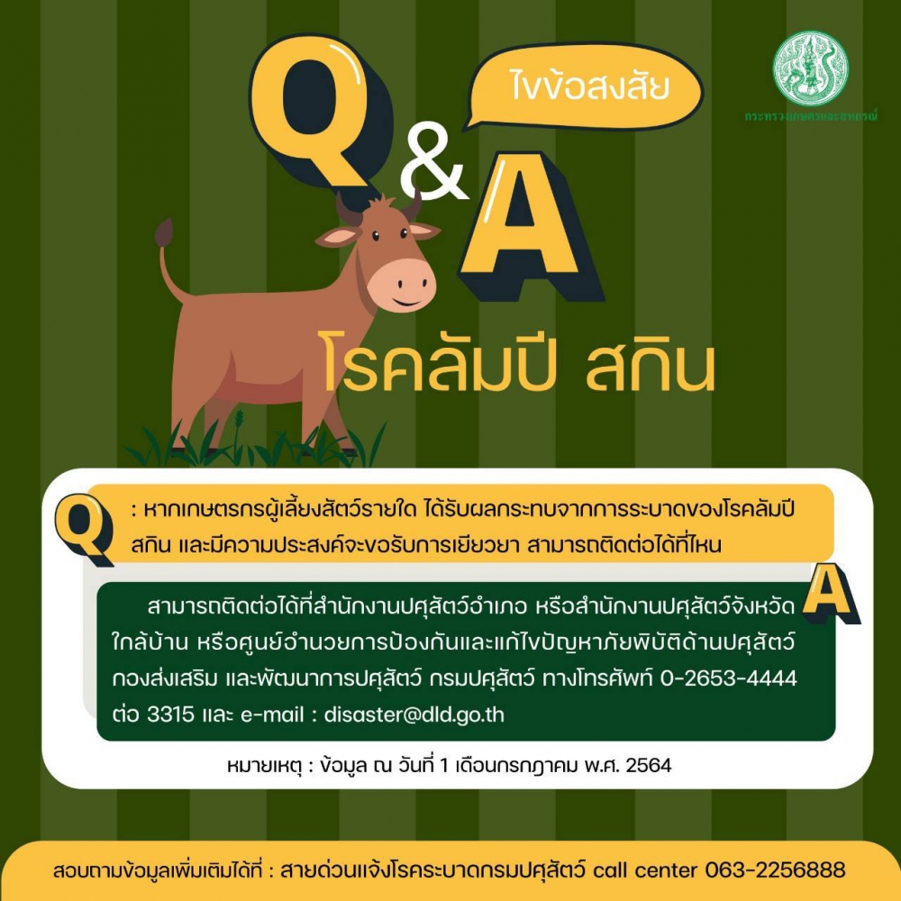 คำถามที่พบบ่อยประจำเดือนมิถุนายน 2564 เรื่อง โรคลัมปีสกิน