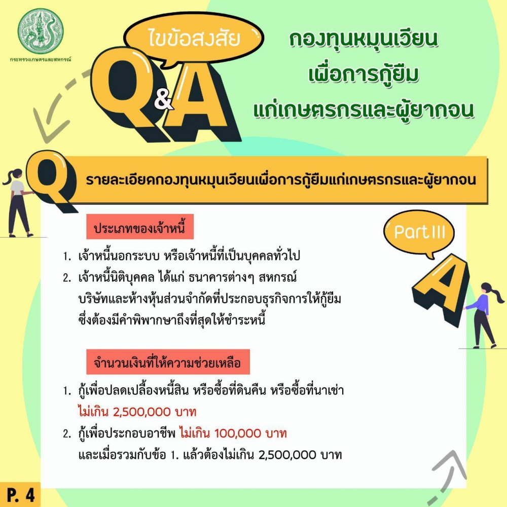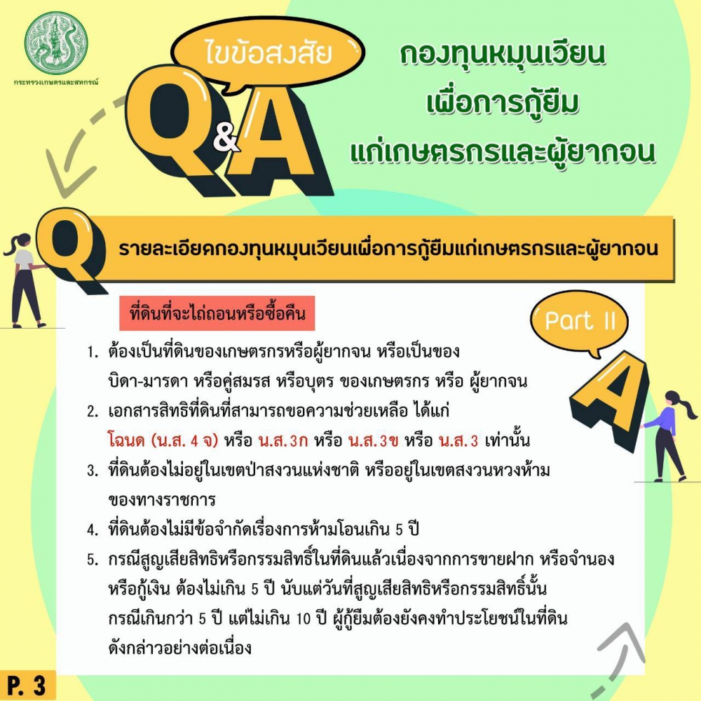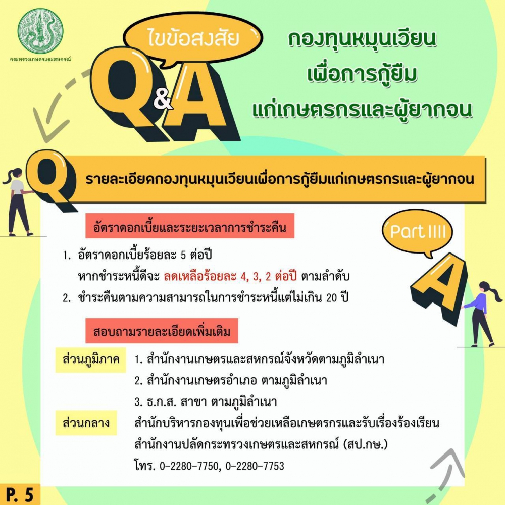 คำถามที่พบบ่อย เดือนตุลาคม 2564--------------ไขข้อสงสัย เรื่องที่ 2 กองทุนหมุนเวียนเพื่อการกู้ยืมแก่เกษตรกรและผู้ยากจน