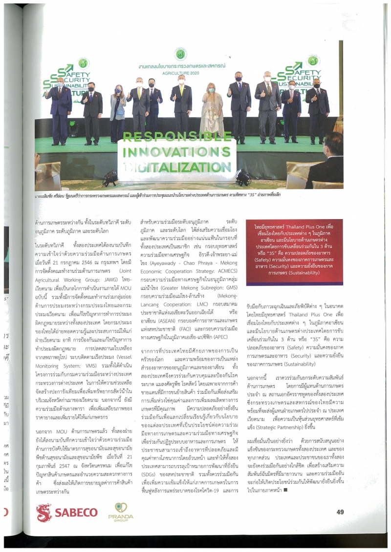 ดร.เฉลิมชัยฯ เน้นย้ำว่า “ไทยมียุทธศาสตร์ Thailand Plus One เพื่อเชื่อมโยงไทยกับประเทศต่าง ๆ ในภูมิภาคอาเซียน และมีนโยบายด้านเกษตรต่างประเทศโดยการขับเคลื่อนร่วมกันใน 3 ด้าน หรือ “3S” คือ ความปลอดภัยของอาหาร (Safety) ความมั่นคงของภาคเกษตรและอาหาร (Security) และความนั่งยืนของภาคการเกษตร (Sustainability)”