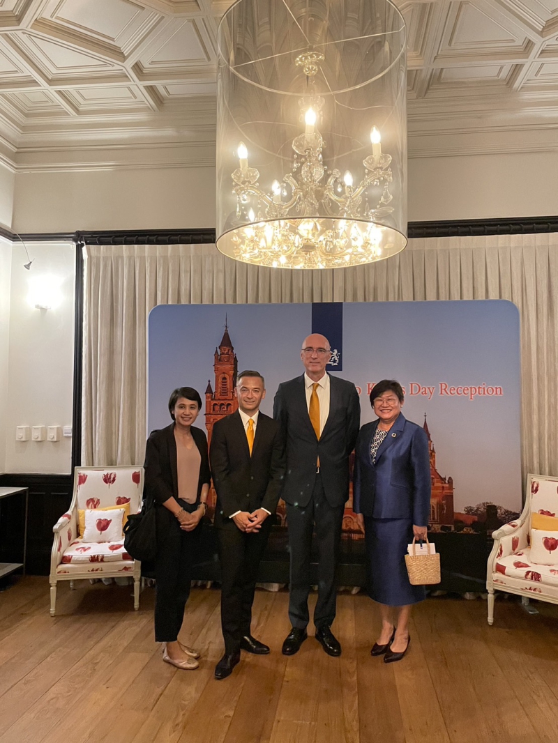 วันพฤหัสบดีที่ 27 เมษายน 2566 ดร. วนิดา กำเนิดเพ็ชร์ ผู้อำนวยการสำนักการเกษตรต่างประเทศ เข้าร่วมงานเลี้ยงฉลองวันพระราชสมภพสมเด็จพระราชาธิบดีวิลเลม อเล็กซานเดอร์ (Willem-Alexander) กษัตริย์แห่งราชอาณาจักรเนเธอร์แลนด์ ตามคำเชิญของ นายแร็มโก แวน ไวน์คาร์เดิน เอกอัครราชทูตราชอาณาจักรเนเธอร์แลนด์ ประจำประเทศไทย ณ ทำเนียบเอกอัครราชทูตราชอาณาจักรเนเธอร์แลนด์