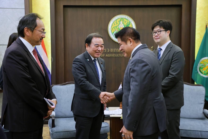 เมื่อวันที่ 3 พฤษภาคม 2567 ร้อยเอก ธรรมนัส พรหมเผ่า รัฐมนตรีว่าการกระทรวงเกษตรและสหกรณ์ หารือร่วมกับ นายเทตสึชิ ซากาโมโตะ รัฐมนตรีว่าการกระทรวงเกษตร ป่าไม้ และประมงญี่ปุ่น พร้อมด้วย นายอรรถกร ศิริลัทธยากร รัฐมนตรีช่วยว่าการกระทรวงเกษตรและสหกรณ์ นายเศรษฐเกียรติ กระจ่างวงษ์ รองปลัดกระทรวงเกษตรและสหกรณ์ ผู้บริหารหน่วยงานที่เกี่ยวข้อง และ ดร.วนิดา กำเนิดเพ็ชร์ ผู้อำนวยการสำนักการเกษตรต่างประเทศเข้าร่วม ณ ห้องดประชุมกระทรวงเกษตรและสหกรณ์