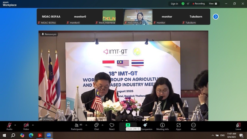 วันที่ 8 สิงหาคม 2568 นายถาวร ทันใจ รองปลัดกระทรวงเกษตรและสหกรณ์ เป็นประธานการประชุมคณะทำงานสาขาการเกษตรและอุตสาหกรรมเกษตรครั้งที่ 18 (THE 18th IMT-GT WORKING GROUP ON AGRICULTURE AND AGRO-BASED INDUSTRY MEETING : WGAA) ของแผนงานการพัฒนาเขตเศรษฐกิจสามฝ่าย อินโดนีเซีย – มาเลเซีย – ไทย (IMT - GT) พร้อมด้วย ดร. อาเด ซานดราดีจายา (Dr. Ade Candradijaya) ผู้อำนวยการ International Cooperation Bureau กระทรวงเกษตรอินโดนีเซีย ในฐานะหัวหน้าคณะผู้แทนอินโดนีเซีย นายไซฟูล นาซรี วาหิด (Mr. Shaiful Naszri Wahid) ทูตฝ่ายเกษตร สถานเอกอัครราชทูตมาเลเซียประจำประเทศไทย ในฐานะหัวหน้าคณะผู้แทนมาเลเซีย นางสาวไปรยา เศวตจินดา ผู้อำนวยการสำนักการเกษตรต่างประเทศ ในฐานะหัวหน้าคณะผู้แทนไทย และผู้แทนจากไทยและประเทศสมาชิก IMT-GT เข้าร่วมการประชุม ณ โรงแรมสุโกศล กรุงเทพมหานคร และผ่านระบบออนไลน์