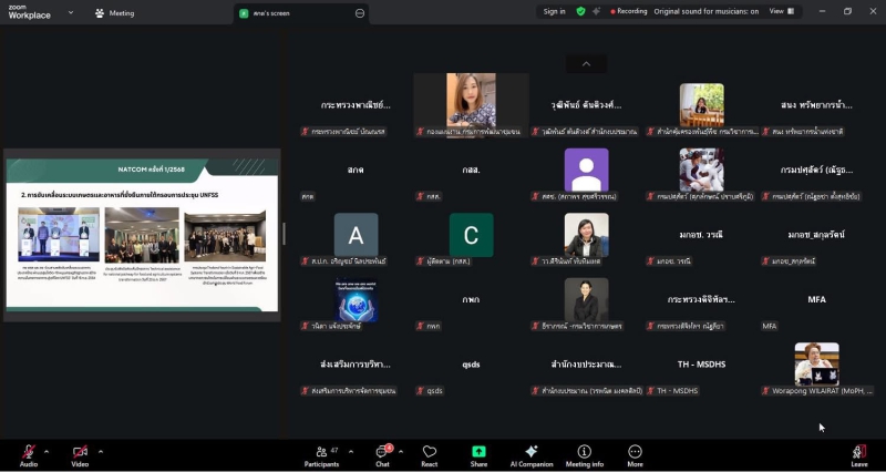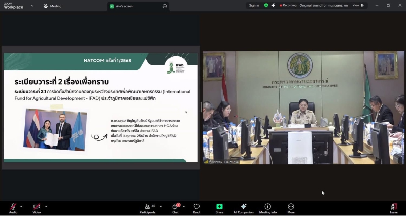 วันที่ 25 กันยายน 2568 นางสาวนฤมล สงวนวงศ์ ผู้ตรวจราชการกระทรวงเกษตรและสหกรณ์ ได้รับมอบหมายจาก นายประยูร อินสกุล ปลัดกระทรวงเกษตรและสหกรณ์ ให้เป็นประธานการประชุมคณะกรรมการประสานงานกับองค์การอาหารและเกษตรแห่งสหประชาชาติและการเกษตรต่างประเทศ ครั้งที่ 1/2568 โดยมี นางสาวไปรยา เศวตจินดา ผู้อำนวยการสำนักการเกษตรต่างประเทศ และหน่วยงานที่เกี่ยวข้องเข้าร่วม ณ ห้องประชุม 134 กระทรวงเกษตรและสหกรณ์ และผ่านระบบการประชุมออนไลน์