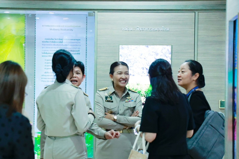 ในโอกาสนี้ รองอธิบดีกรมหม่อนไหม ได้นำคณะผู้แทน FAO เยี่ยมชมพิพิธภัณฑ์หม่อนไหม เพื่อถ่ายทอดเรื่องราวและคุณค่าทางวัฒนธรรมที่ถักทอผ่านเส้นใยไหม ได้นำเสนอตั้งแต่ประวัติความเป็นมาของมรดกภูมิปัญญาการปลูกหม่อนเลี้ยงไหมของไทย ตลอดจนจัดแสดงนวัตกรรมผลิตภัณฑ์แปรรูปที่ล้ำสมัย อาทิ ผลิตภัณฑ์เวชสำอางจากโปรตีนไหม และอาหารแปรรูปจากหม่อน ซึ่งสร้างความประทับใจให้กับคณะผู้แทนเป็นอย่างมาก
