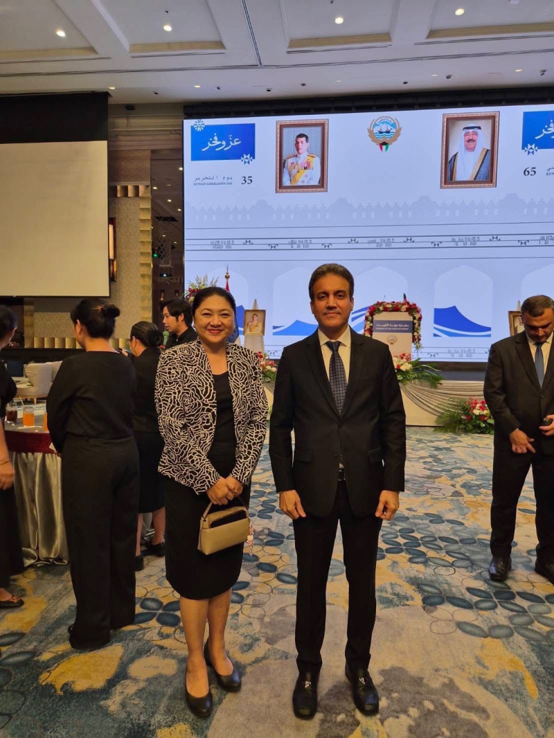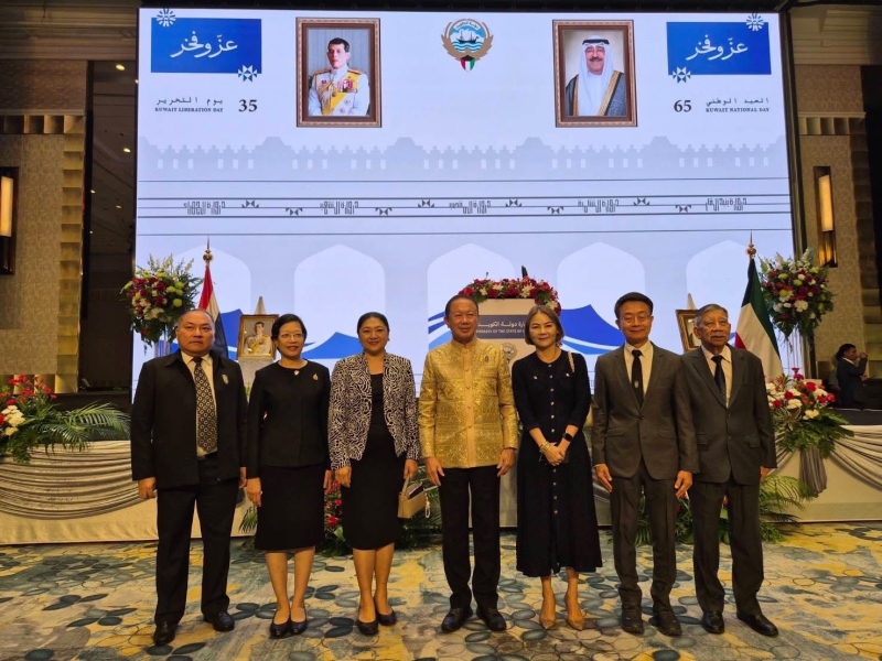 เมื่อวันที่ 3 กุมภาพันธ์ 2569 นางสาวนฤมล สงวนวงศ์ รองปลัดกระทรวงเกษตรและสหกรณ์ ได้รับมอบหมายจาก ร้อยเอก ธรรมนัส พรหมเผ่า รองนายกรัฐมนตรี และรัฐมนตรีว่าการกระทรวงเกษตรและสหกรณ์ พร้อมด้วย นางสาวไปรยา เศวตจินดา ผู้อำนวยการสำนักการเกษตรต่างประเทศ เข้าร่วมงานวันชาติรัฐคูเวต และมอบกระเช้าดอกไม้เพื่อแสดงความยินดีแก่ นายอับดุลโมห์เซน อัลฟาเรส อุปทูตรักษาราชการสถานเอกอัครราชทูตคูเวตประจำประเทศไทย เนื่องในโอกาสครบรอบ 65 ปี วันชาติรัฐคูเวต และวันครบรอบการประกาศอิสรภาพรัฐคูเวต ปีที่ 35 ณ โรงแรมอินเตอร์คอนติเนนตัล กรุงเทพฯ