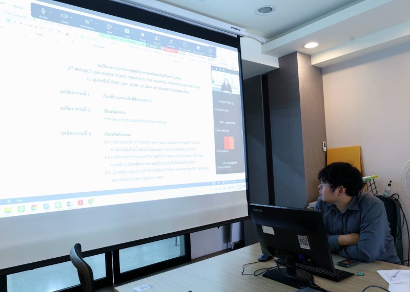 เมื่อวันที่ 11 กุมภาพันธ์ 2569 เวลา 14.00 น. นางสาวไปรยา เศวตจินดา ผู้อำนวยการสำนักการเกษตรต่างประเทศ เป็นประธานการประชุม พร้อมด้วยนางสาวผจงจินต์ กระหม่อมทอง นักวิเคราะห์นโยบายและแผนชำนาญการพิเศษ เข้าร่วมการประชุมเตรียมการสำหรับการประชุม 3rd PROJECT IMPLEMENTATION TEAM (PIT) ON PALM OIL COOPERATION MEETING ผ่านระบบการประชุมทางไกล หารือเกี่ยวกับการขับเคลื่อนกลไกการดำเนินงานของคณะทำงานฯ และแผนงาน (Work plan) กิจกรรมความร่วมมือด้านน้ำมันปาล์มของประเทศสมาชิกให้เกิดผลอย่างเป็นรูปธรรม อาทิ การจัดประชุมเชิงปฏิบัติการ (Workshops) การสัมมนา การแลกเปลี่ยนองค์ความรู้ การวิจัยร่วม และการพัฒนาศักยภาพบุคลากร เป็นต้น โดยการประชุมคณะทำงานขับเคลื่อนความร่วมมือด้านน้ำมันปาล์มภายใต้แผนงาน IMT–GT ครั้งที่ 3 จะจัดขึ้นในวันที่ 20 กุมภาพันธ์ 2569 เวลา 09.00–10.30 น. (เวลาประเทศไทย) ผ่านระบบการประชุมทางไกล