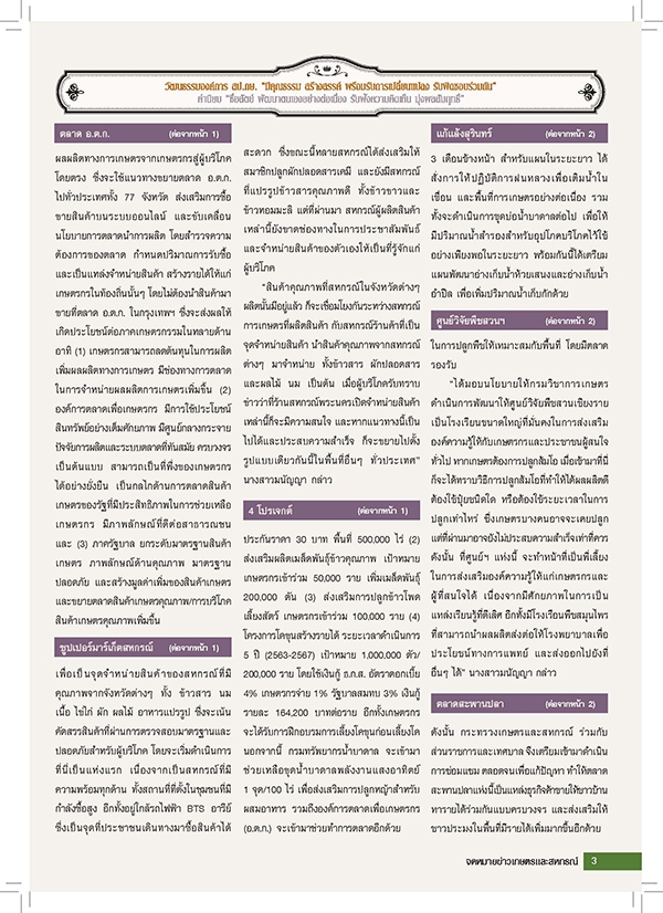 นโยบายสำคัญของกระทรวงเกษตรและสหกรณ์