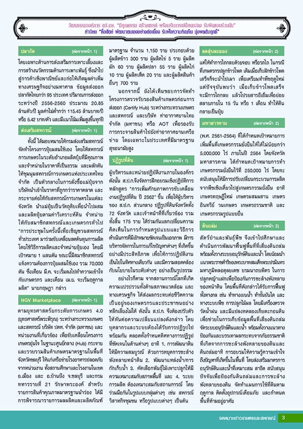 นโยบายสำคัญของกระทรวงเกษตรและสหกรณ์