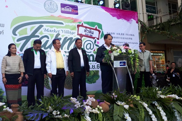 วันที่ 12 กันยายน 2561 เวลา 14.00 น. นายกฤษฎา บุญราช รัฐมนตรีว่าการกระทรวงเกษตรและสหกรณ์ เป็นสักขีพยานในพิธีลงนามในบันทึกข้อตกลงความร่วมมือ (MOU) ระหว่างกรมส่งเสริมการเกษตร กับบริษัทโฮมโปรดักส์ เซ็นเตอร์ จำกัด (มหาชน) และเปิดงาน Farm@home การพัฒนาตลาดสินค้าเกษตรปลอดภัย ณ หัวหินมาร์เก็ตวิลเลจ อำเภอหัวหิน จังหวัดประจวบคีรีขันธ์ โดยมีดร.พัลลภ สิงหเสนี ผู้ว่าราชการประจวบคีรีขันธ์กล่าวต้อนรับ นายสมชาย ชาญณรงค์กุล อธิบดีกรมส่งเสริมการเกษตร กล่าวรายงานการจัดงาน นายวทัญญู วิสุทธิโกศลกรรมการผู้จัดการ บ.มาร์เก็ตวิลเลจและผู้ช่วยกรรมการผู้จัดการ-กลุ่มพัฒนาธุรกิจ บ.โฮม โปรดักส์ เซ็นเตอร์ จำกัด (มหาชน) กล่าวถึงการสนับสนุนตลาดสินค้าเกษตรกร ทั้งนี้ นายอานัติ วิเศษรจนา ผู้ตรวจราชการกระทรวงเกษตรและสหกรณ์ นายอำเภอหัวหิน นายอำเภอเมืองฯ เกษตรจังหวัด เกษตรและสหกรณ์จังหวัด สหกรณ์จังหวัด ประมงจังหวัดปศุสัตว์จังหวัด หัวหน้าส่วนราชการในจังหวัดและเกษตรและสหกรณ์จังหวัดเพชรบุรี ได้ร่วมให้การต้อนรับรัฐมนตรีและคณะ ซึ่งในงานมีการจำหน่ายสินค้าดีจาก 8 จังหวัดได้แก่สุพรรณบุรี กาญจนบุรี นครปฐม ราชบุรี สมุทรสาคร สมุทรสงคราม เพชรบุรี และประจวบคีรีขันธ์ จัดระหว่างวันที่ 11-16 กันยายน 2561 หน้าศูนย์การค้าหัวหินมาร์เก็ตวิลเลจ หัวหิน จัดโดยสำนักงานส่งเสริมและพัฒนาการเกษตรที่ 2 จังหวัดราชบุรี