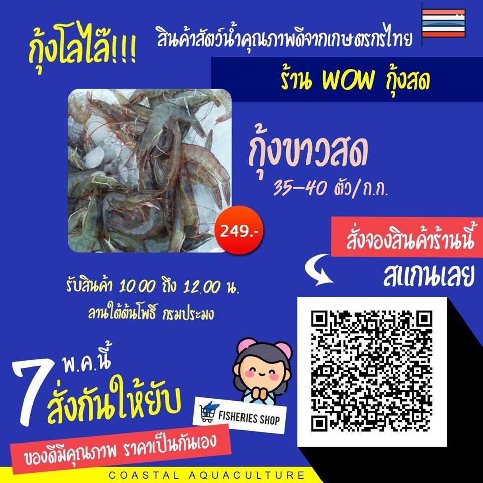 ขายกุ้งขาวสด ขนาด 35-40 ตัว/ก.ก. ราคา 249 บาท