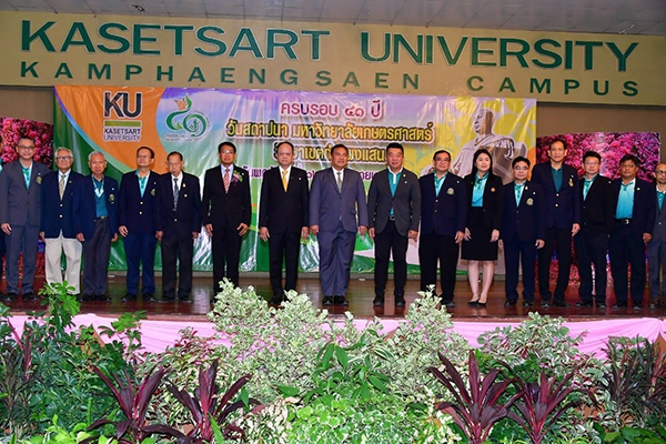 ดร.ทองเปลว กองจันทร์ ปลัดกระทรวงเกษตรและสหกรณ์ พร้อมด้วยนายสัญญา แสงพุ่มพงษ์ ผู้ตรวจราชการกระทรวงเกษตรและสหกรณ์ รักษาราชการแทนอธิบดีกรมชลประทาน ร่วมพิธีวางพวงมาลาหม่อมหลวงชูชาติ กำภู เนื่องในวันคล้ายวันสถาปนามหาวิทยาลัยเกษตรศาสตร์ วิทยาเขตกำแพงแสน ครบรอบ 41 ปี ณ สระพระพิรุณ ศูนย์มหาวิทยาลัย มหาวิทยาลัยเกษตรศาสตร์ วิทยาเขตกำแพงแสน จังหวัดนครปฐม