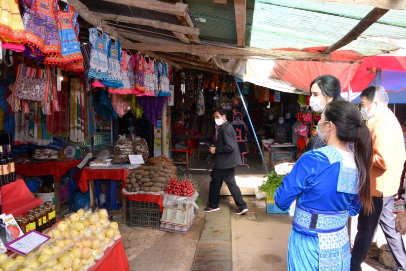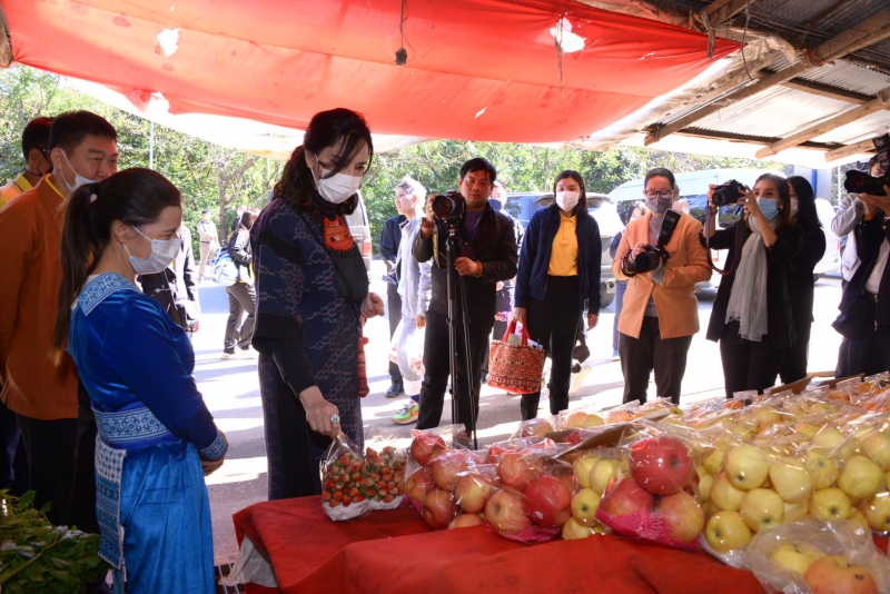 จากนั้น รัฐมนตรีช่วยว่าการกระทรวงเกษตรและสหกรณ์ ได้เยี่ยมชมตลาดเกษตรกร ตลาดแม่บ้านและเยาวชนบ้านขุนกลาง ซึ่งกรมส่งเสริมสหกรณ์ ได้ส่งเสริมกลุ่มสตรีซึ่งเป็นแม่บ้านและเยาวชน ของบ้านขุนกลางให้มีอาชีพและเพิ่มรายได้โดยการตั้งตลาดขายสินค้าชุมชน เพื่อจำหน่ายของที่ระลึกและผลิตภัณฑ์การเกษตรตามฤดูกาล ปัจจุบันมีสมาชิก 80 คน มีทุนหมุนเวียนมากกว่า 5 แสนบาท สมาชิกกลุ่มสตรีมีรายได้เฉลี่ย 30,000 - 100,000 บาท/ปี