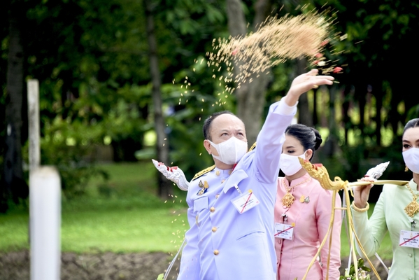 ในการนี้ พระบาทสมเด็จพระปรเมนทรรามาธิบดีศรีสินทรมหาวชิราลงกรณ มหิศรภูมิพลราชวรางกูร กิติสิริสมบูรณอดุลยเดช สยามินทราธิเบศรราชวโรดม บรมนาถบพิตร พระวชิรเกล้าเจ้าอยู่หัว ทรงพระกรุณาโปรดอาราธนาให้สมเด็จพระอริยวงศาคตญาณ สมเด็จพระสังฆราช สกลมหาสังฆปริณายก เสด็จไปทรงเป็นประธานในการประกอบพิธีปลุกเสกเมล็ดพันธุ์ข้าวพระราชทานและพืชพันธุ์ต่าง ๆ พร้อมทั้งพระมหาราชครูพิธีศรีวิสุทธิคุณ เป็นประธานฝ่ายพราหมณ์ ณ พระอุโบสถ วัดพระศรีรัตนศาสดาราม ในพระบรมมหาราชวัง ในวันอาทิตย์ที่ 9 พฤษภาคม 2564 โดยพระราชทานพระบรมราชานุญาตให้อัญเชิญพระคันธารราษฎร์ใหญ่ (ประทับนั่ง) และพระคันธารราษฎร์จีน (ประทับนั่ง) ที่ประดิษฐาน ณ หอพระคันธารราษฎร์ วัดพระศรีรัตนศาสดาราม ไปประดิษฐานเป็นพระพุทธรูปประธานในพิธีปลุกเสกเมล็ดพันธุ์ข้าวพระราชทานและพืชพันธุ์ต่าง ๆ พร้อมทั้งทรงกรุณาโปรดเกล้าฯ ให้ พลเอก สุรยุทธ์ จุลานนท์ ประธานองคมนตรี ปฏิบัติหน้าที่ประธานฝ่ายฆราวาสในพิธีปลุกเสกเมล็ดพันธุ์ข้าวพระราชทานและพืชพันธุ์ต่าง ๆ ณ พระอุโบสถวัดพระศรีรัตนศาสดาราม ในพระบรมมหาราชวัง ในวันอาทิตย์ที่ 9 พฤษภาคม 2564 เวลา 17.00 น. และปฏิบัติหน้าที่ประธานในพิธีหว่านข้าวในแปลงนาทดลอง สวนจิตรลดา ในวันจันทร์ที่ 10 พฤษภาคม 2564 เวลา 10.00 น. โดยมีปลัดกระทรวงเกษตรและสหกรณ์ เป็นผู้หว่านข้าว เพื่อเป็นเมล็ดพันธุ์สำหรับการประกอบพระราชพิธีพืชมงคลจรดพระนังคัลแรกนาขวัญในปีพุทธศักราช 2565