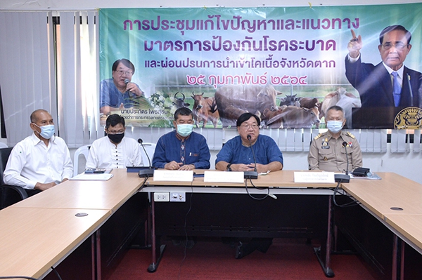 นายประภัตร โพธสุธน รัฐมนตรีช่วยว่าการกระทรวงเกษตรและสหกรณ์ กล่าวภายหลังเป็นประธานการประชุมหารือมาตรการควบคุมป้องกันโรคระบาด และผ่อนปรนการนำเข้าโคเนื้อ ร่วมกับผู้ประกอบการเจ้าของคอกกัก ผู้เลี้ยงโค เจ้าหน้าที่และหน่วยงานที่เกี่ยวข้อง ณ มหาวิทยาลัยเทคโนโลยีราชมงคลล้านนาตาก อ.เมืองตาก จ.ตาก ว่า กระทรวงเกษตรและสหกรณ์ โดยกรมปศุสัตว์ ได้ติดตามสถานการณ์โรคในสัตว์อย่างใกล้ชิด พร้อมสั่งการให้หน่วยงานของกรมปศุสัตว์ โดยปศุสัตว์จังหวัด ปศุสัตว์อำเภอ และชุดเฉพาะกิจกรมปศุสัตว์ ในทุกพื้นที่ดำเนินมาตรการเฝ้าระวัง ป้องกันและควบคุมโรคอย่างต่อเนื่อง อย่างไรก็ตาม ขณะนี้ได้รับรายงานว่าประเทศเมียนมามีการแจ้งพบการระบาดของโรคลัมปี สกิน (Lumpy skin disease) ในโค กระบือ ซึ่งเป็นโรคติดเชื้อไวรัสที่พบในโค กระบือ โดยพบตุ่มเนื้อบนผิวหนังและเยื่อเมือกทั่วร่างกาย จะตกสะเก็ดและเป็นแผลหลุม สัตว์จะมีไข้หายใจลำบาก ในโคนมอาจพบน้ำนมลดอัตราป่วยมากกว่าร้อยละ 5