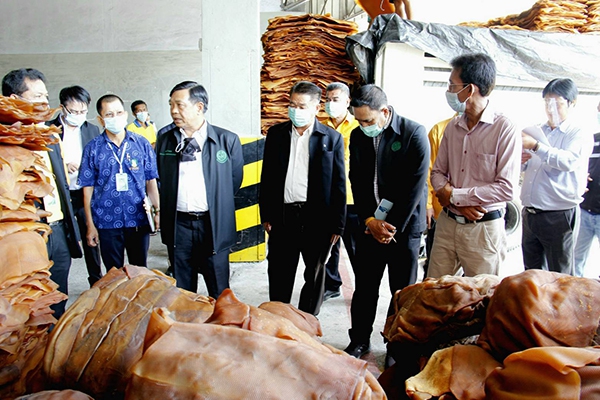 ในช่วงสาย ที่ปรึกษารัฐมนตรีว่าการกระทรวงเกษตรและสหกรณ์เดินทางเข้าเยี่ยมชมการดำเนินงานของ สหกรณ์นิคมทุ่งสง จำกัด ซึ่งได้ดำเนินธุรกิจแปรรูปยางโรงรมยางจำนวน 2 โรง และ โรงงานผลิตยางแผ่นรมควันอัดก้อน 1 โรง โดยสามารถรองรับปริมาณน้ำยางจากสมาชิกได้ประมาณ 13,000 กก./วัน ซึ่งโรงงานของสหกรณ์นิคมทุ่งสง จำกัด ได้ผ่านการรับรองมาตรฐานการผลิตยางแผ่นรมควัน : GMP เป็นโรงแรกของจังหวัดนครศรีธรรมราช และในส่วนของโรงงานผลิตยางแผ่นรมควันอัดก้อนได้ผ่านการรับรอง ISO 9001: 2015 ซึ่งขณะนี้โรงงานยางอัดก้อนสหกรณ์นิคมทุ่งสง ได้ผลิตยางอัดก้อนและรับจ้างอัดก้อนให้กับ กยท.และบริษัทต่างๆ สามารถส่งออกยางทั้งภายในประเทศและต่างประเทศ รวมมูลมูลค่ากว่า 80 ล้านบาท