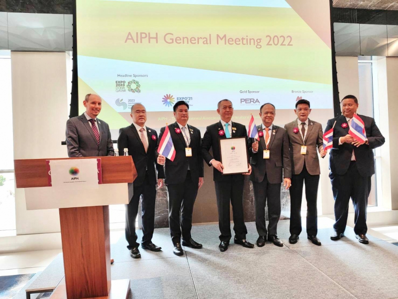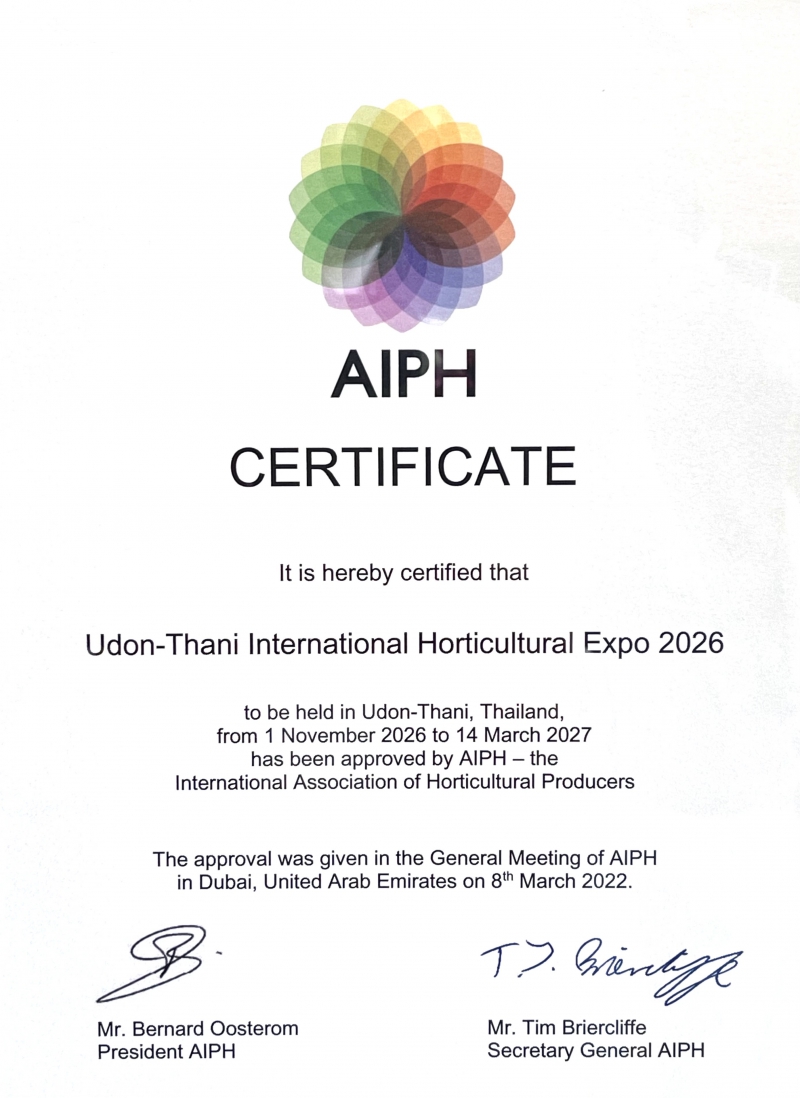 โดยในวันนี้ (8 มีนาคม 2565) AIPH ได้ประกาศการคัดเลือกอย่างเป็นทางการ ให้ประเทศไทยเป็นเจ้าภาพการจัดงานมหกรรมพืชสวนโลกจังหวัดอุดรธานี พ.ศ. 2569 (ระดับ B) ณ Crowne Plaza Dubai Marina เมืองดูไบ สหรัฐอาหรับ เอมิเรตส์ ภายใต้แนวคิด Diversity of Life: Connecting people, water and plants for sustainable living (วิถีชีวิตสายน้ำและพืชพรรณ) ระยะเวลาจัดงานระหว่างวันที่ 1 พฤศจิกายน 2569 – 14 มีนาคม 2570 (134 วัน) บริเวณพื้นที่ ชุ่มน้ำหนองแด ตำบลกุดสระ อำเภอเมือง จังหวัดอุดรธานี บนเนื้อที่ 1,030 ไร่ แบ่งเป็น พื้นน้ำ 400 ไร่ และพื้นดิน 630 ไร่ คาดว่าจะทำให้มีจำนวนผู้เข้าชมงานถึง 3.6 ล้านคน เป็นชาวไทยร้อยละ 70 และชาวต่างชาติร้อยละ 30 มีจำนวนประเทศ ที่เข้าร่วมงานไม่น้อยกว่า 20 ประเทศ / องค์กร / สมาคม