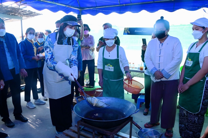 จากนั้น ได้พบปะหัวหน้าส่วนราชการ สมาชิกสหกรณ์ กลุ่มเกษตรกร และประชาชนในพื้นที่ที่มารอต้อนรับ และเยี่ยมชมนิทรรศการการดำเนินธุรกิจของสหกรณ์ฯ และบูธจัดแสดงสินค้าทางการเกษตรของกลุ่มอาชีพในสังกัดสหกรณ์กลุ่มเกษตรกร พบปะเกษตรกรรุ่นใหม่ที่เข้าร่วมโครงการนำลูกหลานเกษตรกรกลับบ้าน สานต่ออาชีพทางการเกษตร ในพื้นที่จังหวัดเชียงใหม่ นำโดย นายสถาพร คิดไชย อายุ 47 ปี นำผลผลิต ปลากดหลวงรมควัน ผักผลไม้อินทรีย์ ซึ่งผลผลิตได้รับรอง PGS (Participatory Guarantee Systems) เป็นระบบการรับรองแบบมีส่วนร่วม รับรองคุณภาพที่มุ่งเน้น